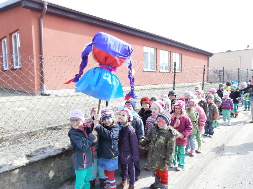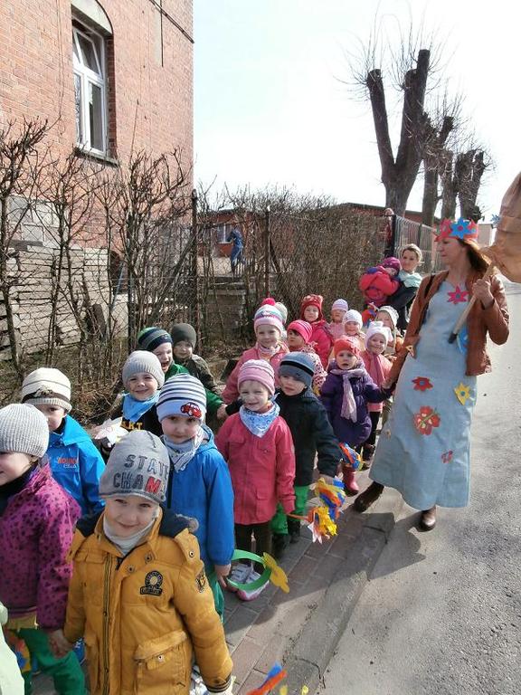 Dnia 21 marca 2014 roku dzieci uczęszczające do przedszkola uroczyście obchodziły nadejście wiosny. Spacer ulicami Skorzewa wszystkich przedszkolaków, połączony z niesieniem wspólnie wykonanej marzanny, wprawił jego uczestników w pozytywny nastrój związany z pożegnaniem zimy . Podczas pochodu nie zabrakło także piosenek i wierszyków o tematyce wiosennej. Później przedszkolaki wraz z wychowawczyniami udały się nad pobliską rzeczkę, gdzie w asyście strażaka, nastąpiło podpalenie i wrzucenie marzanny do wody. Tego dnia wszystkie dzieci miały ubrania w kolorze zielonym, a ich głowy zdobiły opaski z barwnymi kwiatami, zatem całe przedszkole przeobraziło się w prawdziwą wiosenną łąkę.