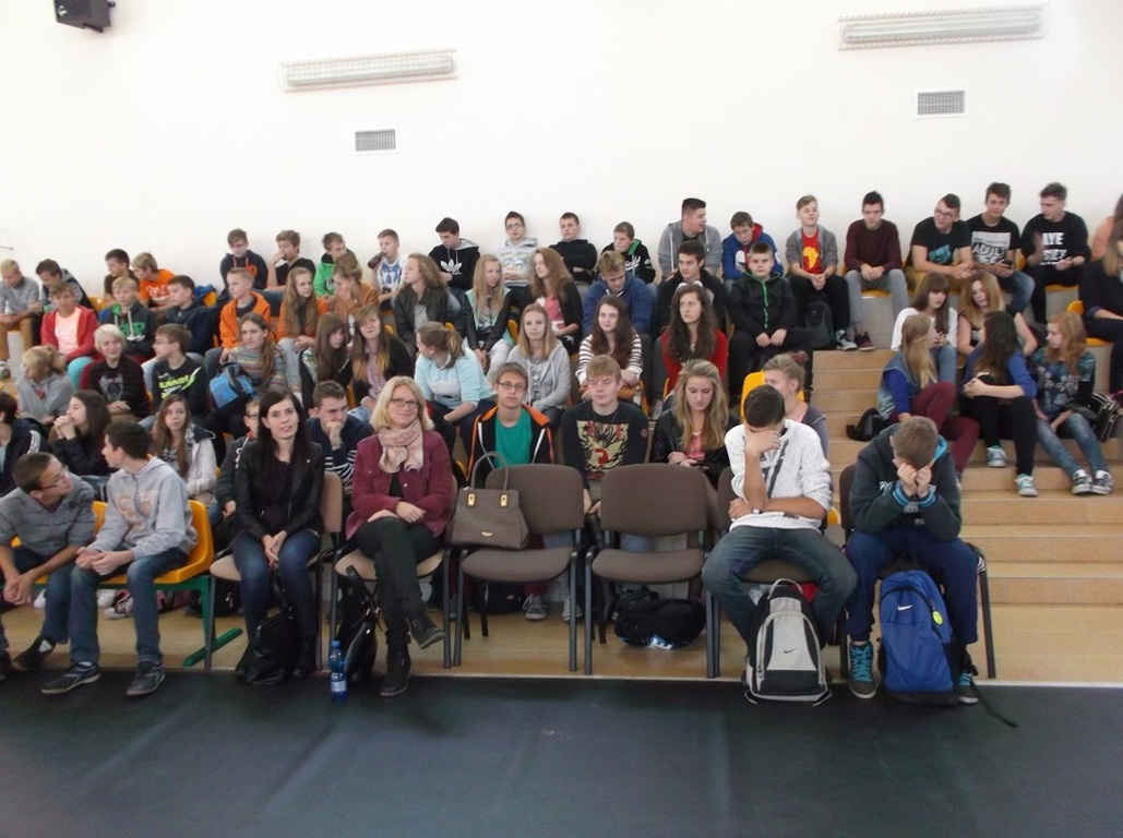 3 października uczniowie gimnazjum wybrali się do zaprzyjaźnionej szkoły w Wielkim Klinczu, gdzie obejrzeli program słowno-muzyczny „Dopóki masz wybór”. Autor programu, Piotr Nagiel, rozmawiał z młodzieżą o ryzyku wiążącym się z sięganiem po alkohol i narkotyki. Sam przez uzależnienia otarł się o śmierć i stracił wszystko, co było ważne w jego życiu, dlatego w obrazowy, wiarygodny i przemawiający do młodych ludzi sposób przestrzegał przed uzależnieniami