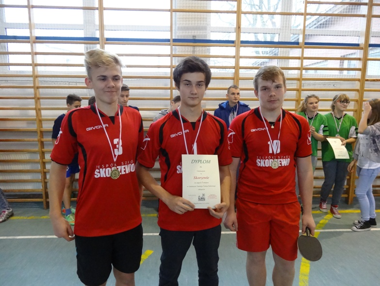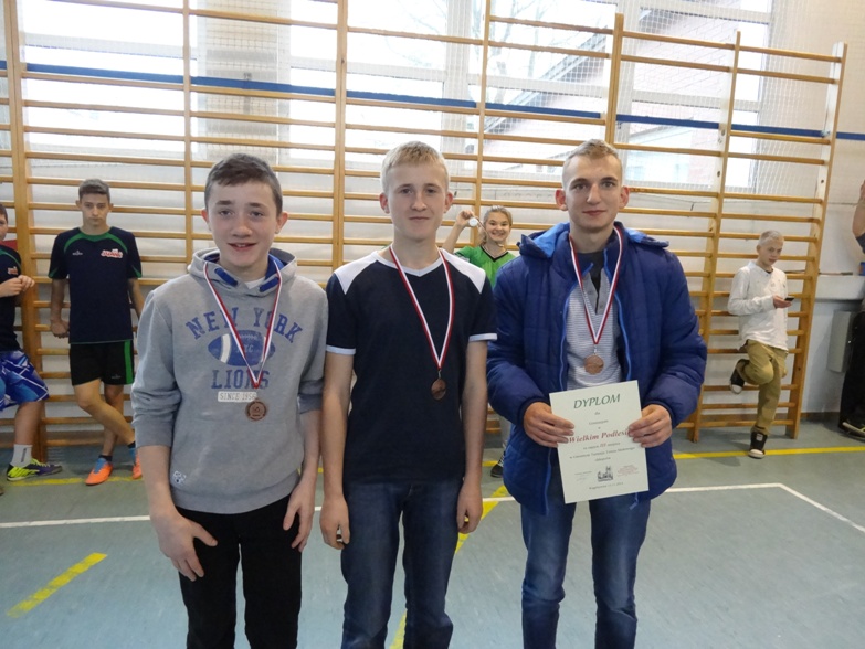 W kategorii chłopców rywalizowały reprezentacje 3 szkół, z których bezkonkurencyjni okazali się nasi zawodnicy. Jakub Studziński, Patryk Zmuda i Kacper Bober nie dali szans rywalom pewnie wygrywając swoje pojedynki w stosunku 3:0. Na drugim miejscu uplasowali się chłopcy z Wąglikowic a na 3 miejscu zawody zakończyli reprezentanci Wielkiego Podlesia.