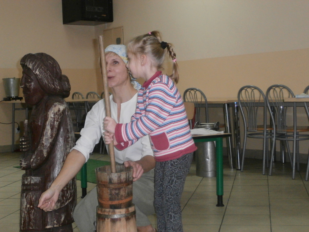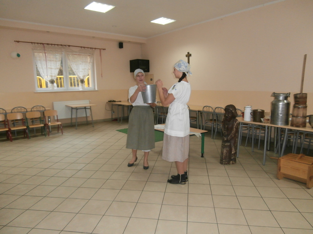 Dzieci miały też możliwość zobaczyć tradycyjne narzędzia do ręcznego wyrobu masła i twarogu.
