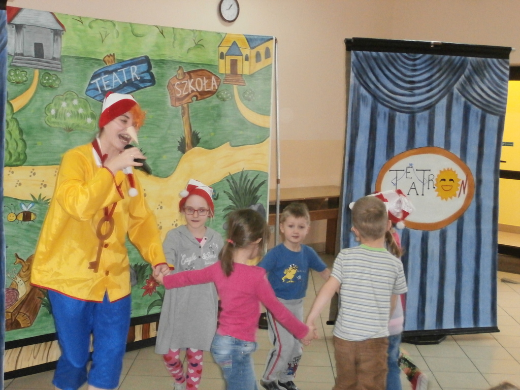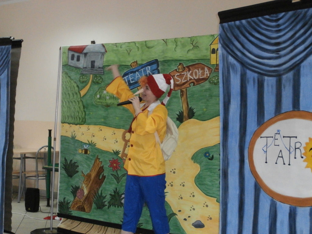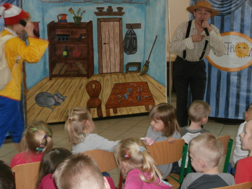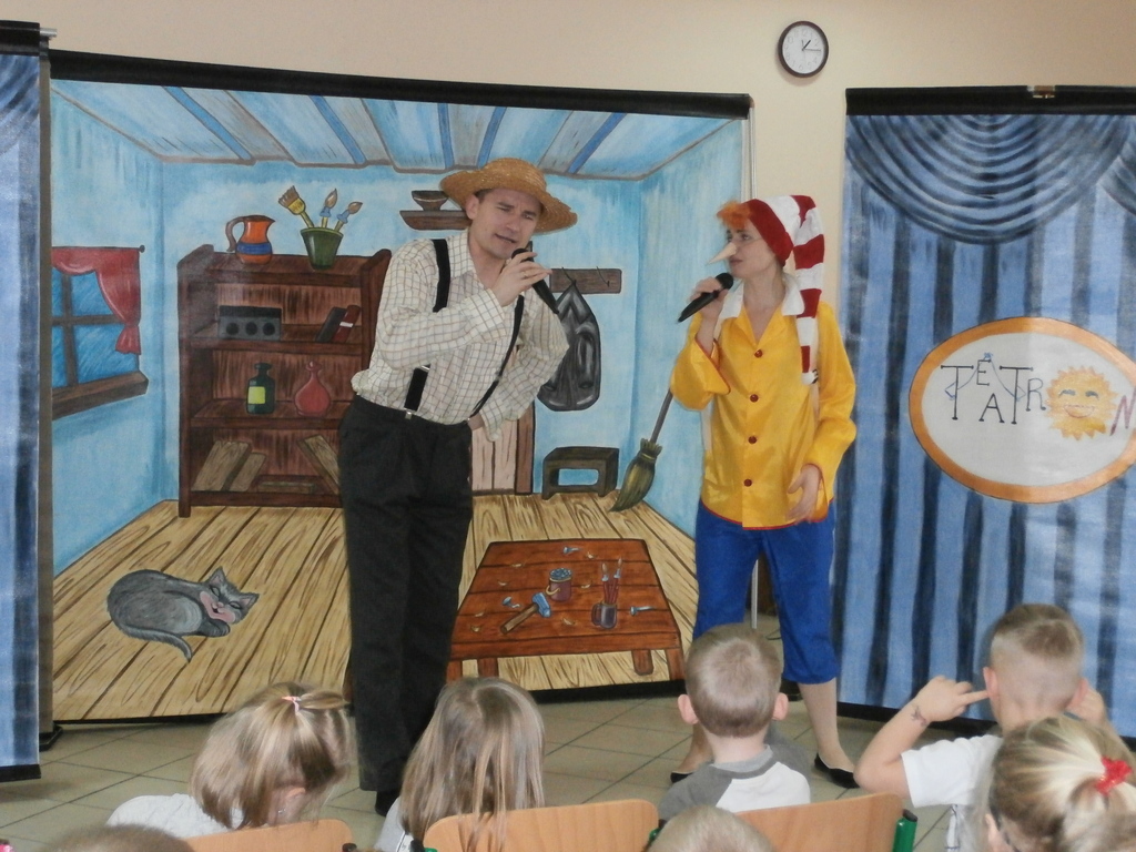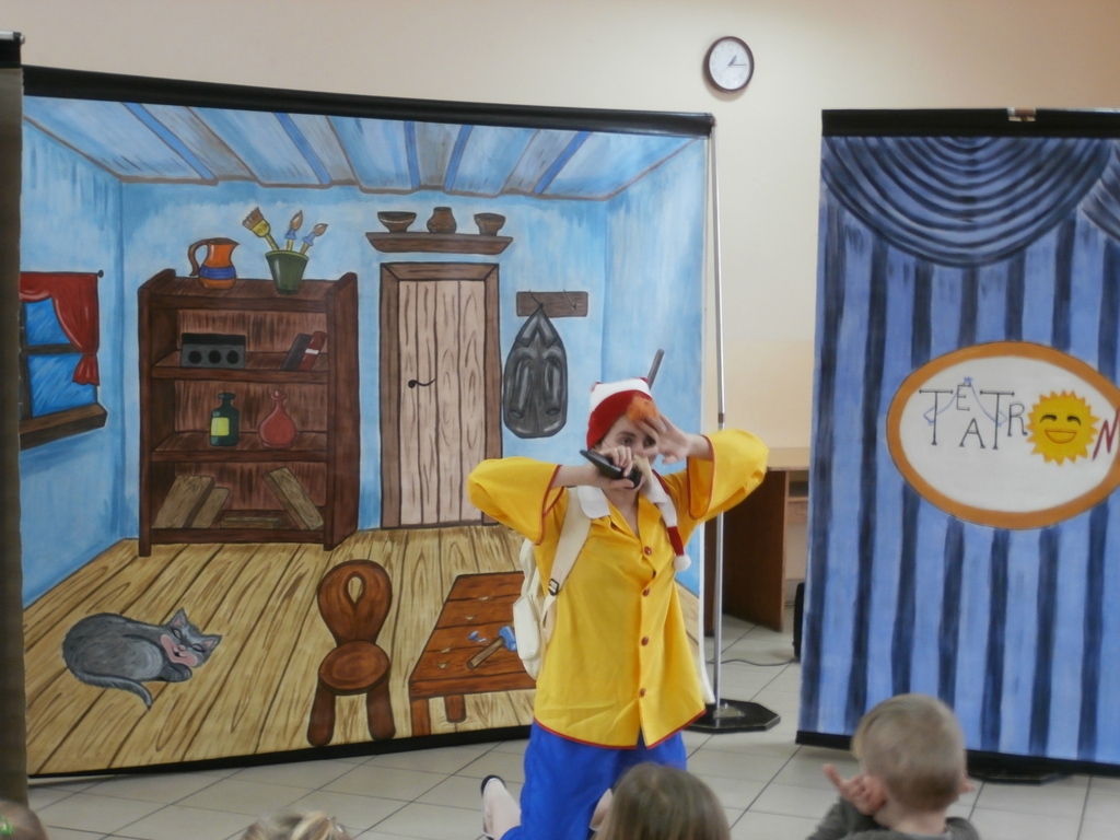Spektakl, który odbył się w naszym przedszkolu to niezwykle pouczająca (dydaktyczna) i nie pozbawiona humoru bajka opowiadająca o małym chłopcu Buratino, którego to czeka wiele przygód w drodze do szkoły. Bajka uczy pracowitości, uczciwości, wytrwałości ale także pokazuje realia życia, że trzeba uważać na ludzi których spotykamy, że trzeba być ostrożnym bo w przeciwnym razie możemy mieć kłopoty. Jak zawsze na scenie towarzyszyły dzieci co tylko uatrakcyjniło całe przedstawienie.
