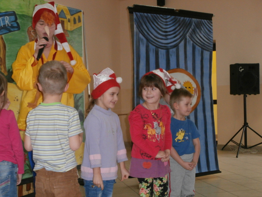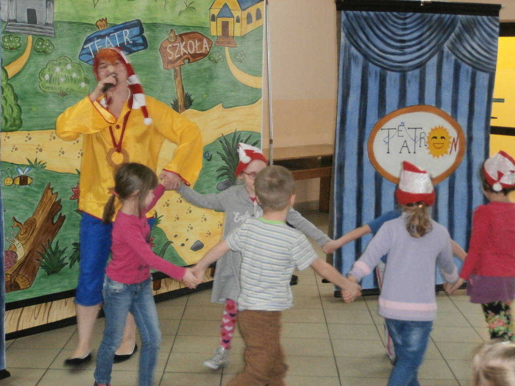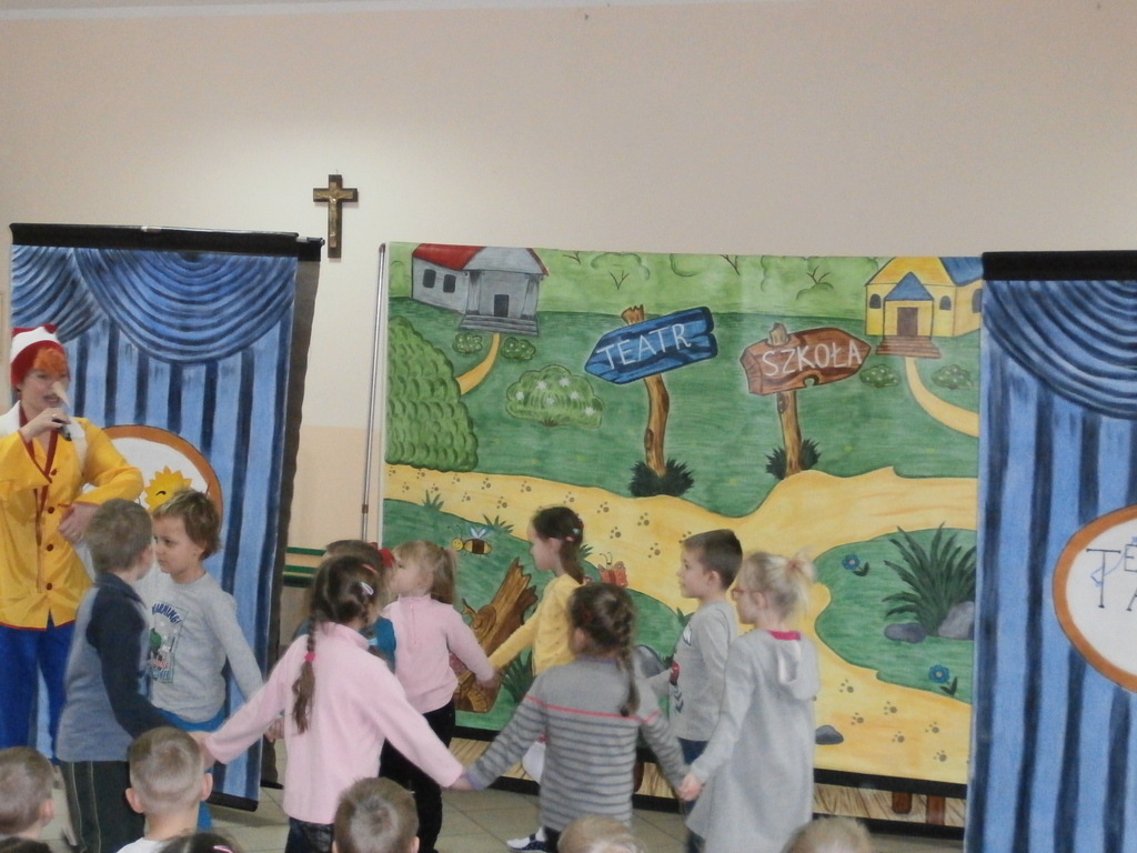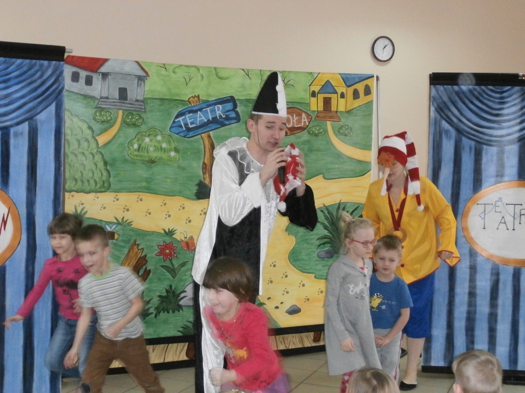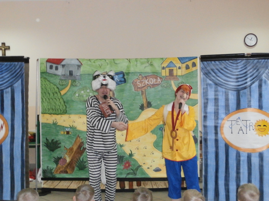 Spektakl, który odbył się w naszym przedszkolu to niezwykle pouczająca (dydaktyczna) i nie pozbawiona humoru bajka opowiadająca o małym chłopcu Buratino, którego to czeka wiele przygód w drodze do szkoły. Bajka uczy pracowitości, uczciwości, wytrwałości ale także pokazuje realia życia, że trzeba uważać na ludzi których spotykamy, że trzeba być ostrożnym bo w przeciwnym razie możemy mieć kłopoty. Jak zawsze na scenie towarzyszyły dzieci co tylko uatrakcyjniło całe przedstawienie.