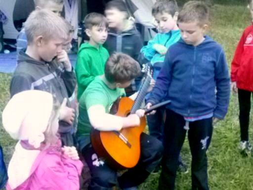 Wieczorem wspólnie z rodzicami biesiadowali i piekli kiełbaski przy ognisku. W podziękowaniu za ich trud, przygotowali dla mam i tatusiów krótką inscenizację.