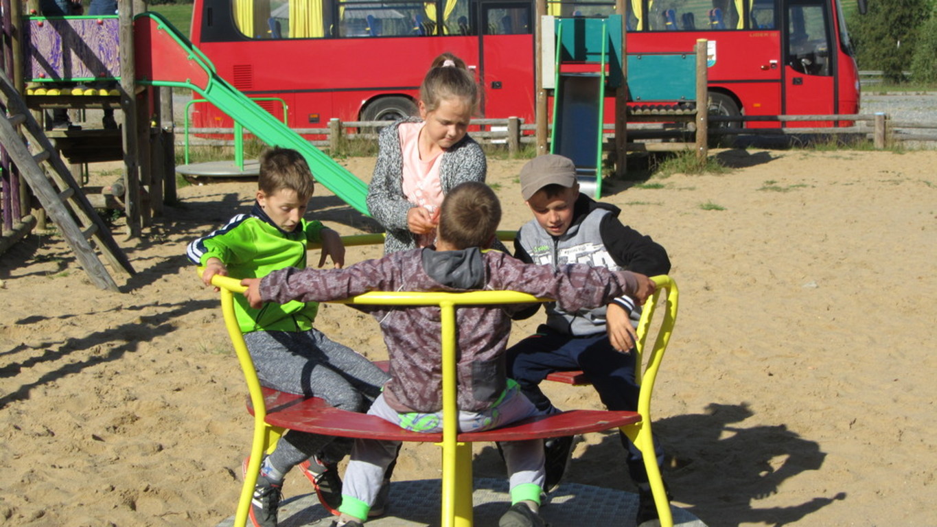 Bogatsi o ciekawe informacje i doświadczenia uczniowie mieli także czas na zabawę i wspólny posiłek przy ognisku. Zapach pieczonych kiełbasek i jabłek przyciągnął do stołu nawet najbardziej zagorzałych miłośników karuzeli , zjeżdżalni czy automatów z kulkami... Po kilkugodzinnej wycieczce uśmiechnięci i rozśpiewani czwartoklasiści wrócili do szkoły.