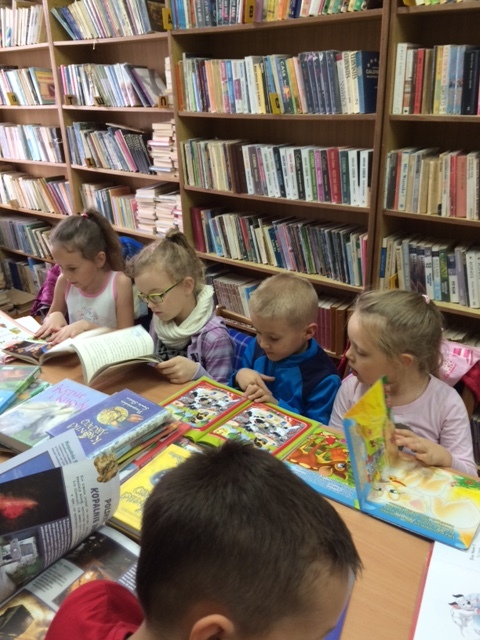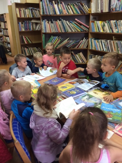 W październiku uczniowie klas pierwszych wraz z wychowawczyniami przybyli na pierwszą lekcje biblioteczną. Podczas pobytu w bibliotece dzieci miały możliwość zobaczenia różnorodnych książek. W ciepłej atmosferze mali czytelnicy poznali kilka ważnych rzeczy związanych z odwiedzanym miejscem, poznały różnice między księgarnią a biblioteką, zasady wypożyczania zbiorów oraz jak należy dbać o książki – nie tylko te wypożyczone. Samodzielne oglądanie książeczek umieszczonych na półkach wzbudziło zachwyt. Dzieci dowiedziały się, iż mogą przychodzić w każdej wolnej chwili i różnorodnie spędzać czas np.: pooglądać na miejscu książki i czasopisma, skorzystać z księgozbioru podręcznego (słowniki, encyklopedie), odrobić lekcje, wypożyczyć do domu wybrana książkę.