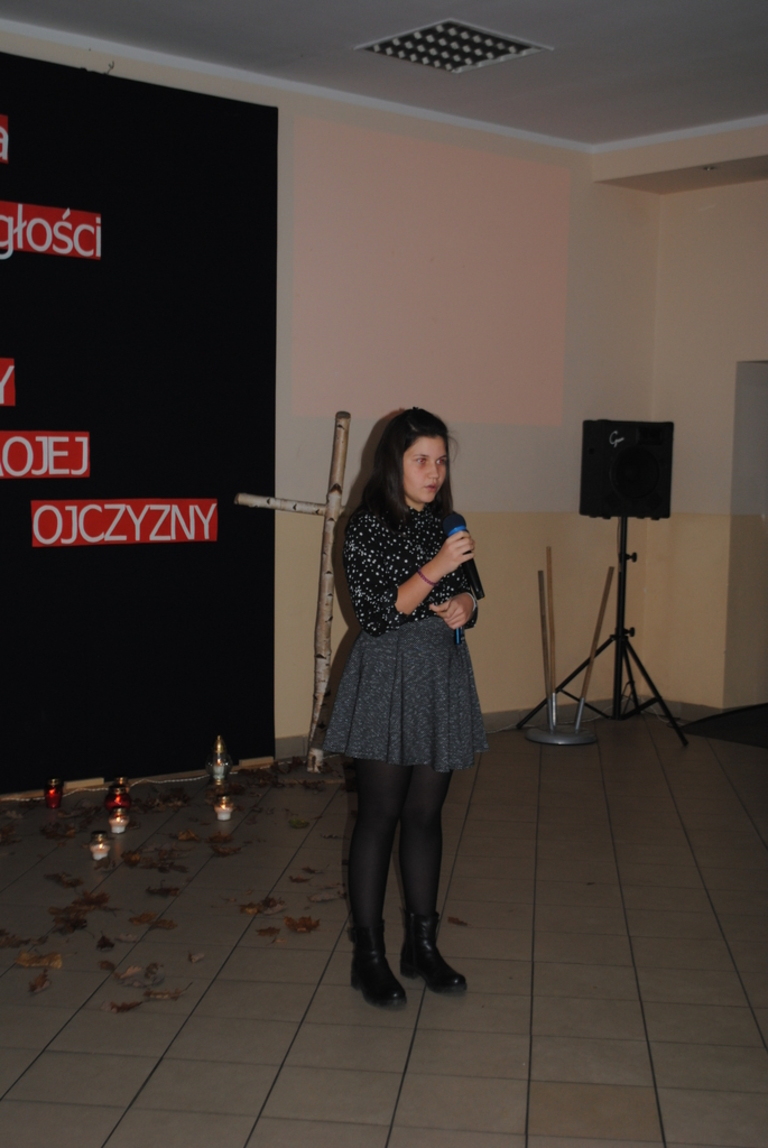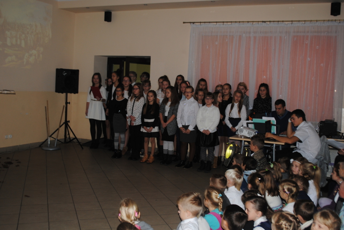 Była to lekcja historii i patriotyzmu, dzięki której mogliśmy po raz kolejny poczuć atmosferę minionych wieków i wyrazić swoją wdzięczność dla tych, którzy walczyli o Polskę i oddali życie za ojczyznę. Zadumie nad historią naszego kraju sprzyjały recytowane wiersze przez uczniów klasy III gimnazjum oraz prezentacja multimedialna obrazująca ważne momenty w dziejach Polski. Chór śpiewał pieśni patriotyczne, a całości dopełniała dekoracja okolicznościowa.