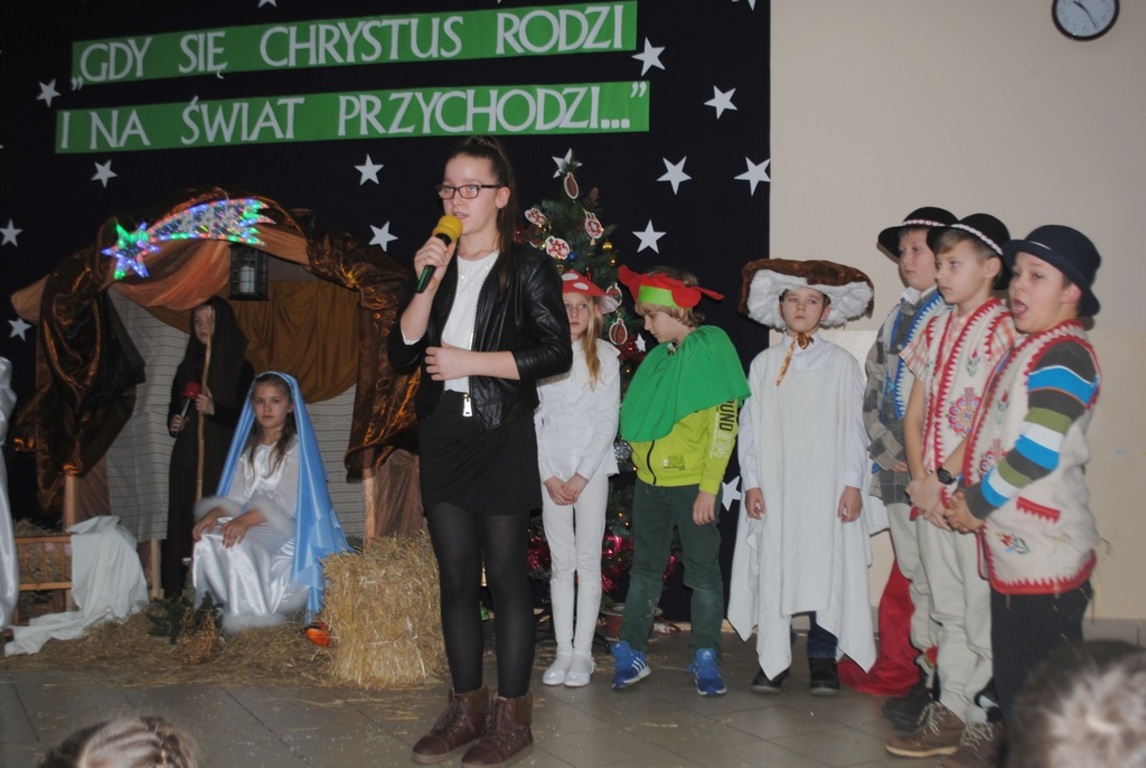 Święta Bożego Narodzenia to piękny czas, z którym wiąże się wiele zwyczajów. Jednym z nich są jasełka, które przenoszą nas w czasy narodzin Chrystusa. 21 grudnia 2015r. w ostatnim dniu zajęć przed przerwą świąteczną odbyły się w naszej szkole jasełka. Klasa III przygotowała wraz z Panią Iwoną Szarmach oraz Panią Katarzyną Nalborską zaprezentowali montaż słowno- muzyczny przypominający wydarzenia związane z narodzinami Chrystusa, abyśmy po raz kolejny przeżyli tajemnicę Bożego Narodzenia..