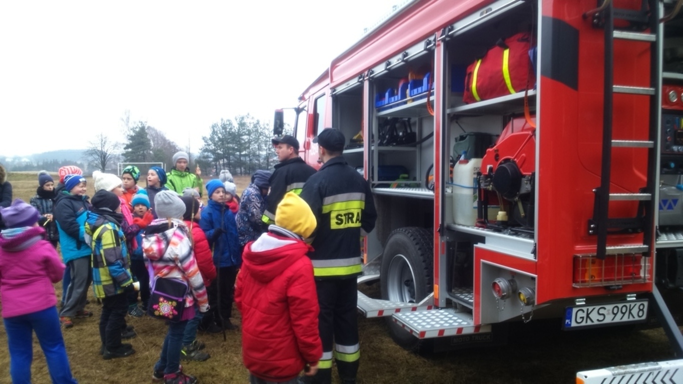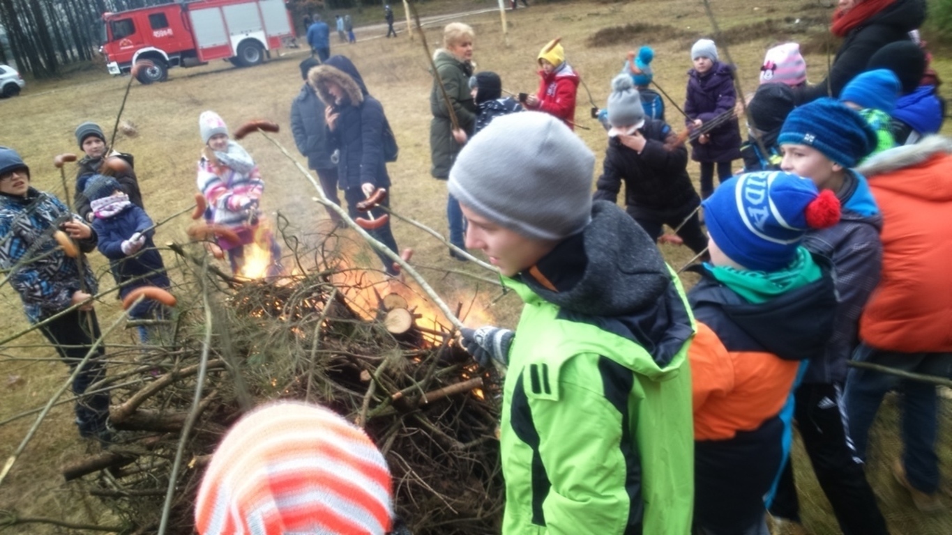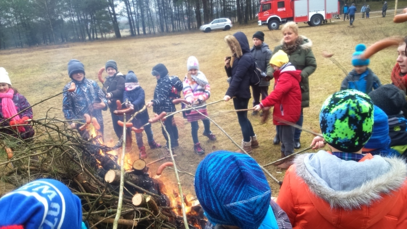 Pomimo braku śniegu, bawiliśmy się świetnie. Dzięki wsparciu Rady Sołeckiej i zaangażowaniu Pani sołtys Katarzyny Formela oraz Pań: Emilii Reiter, Marzeny Bogdan, Ewy Nowak spędziliśmy mile czas przy ognisku na pieczeniu kiełbasek. Płomień ogniska cały czas podtrzymywał, a nie było łatwo, Pan Zdzisław Knut. Korzystając z obecności strażaków mogliśmy poczuć się trochę jak Oni w akcji.
