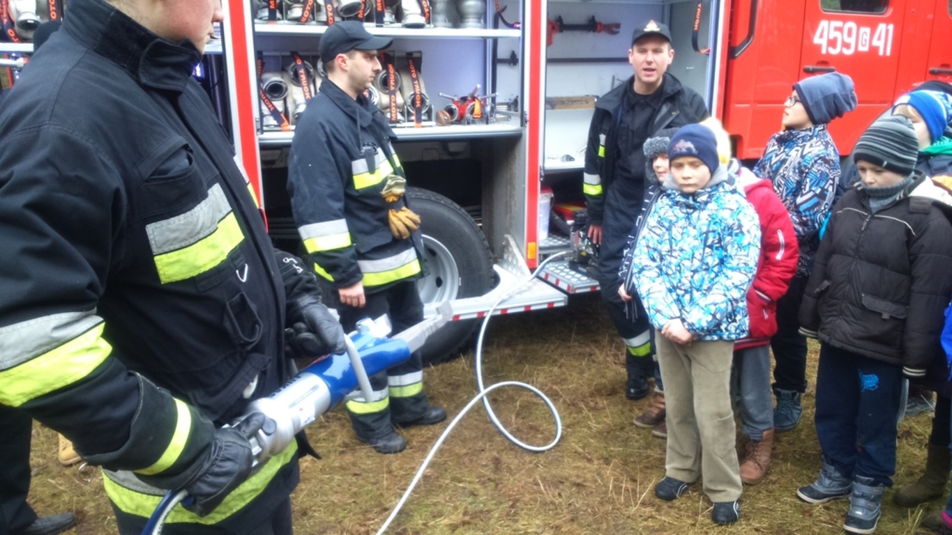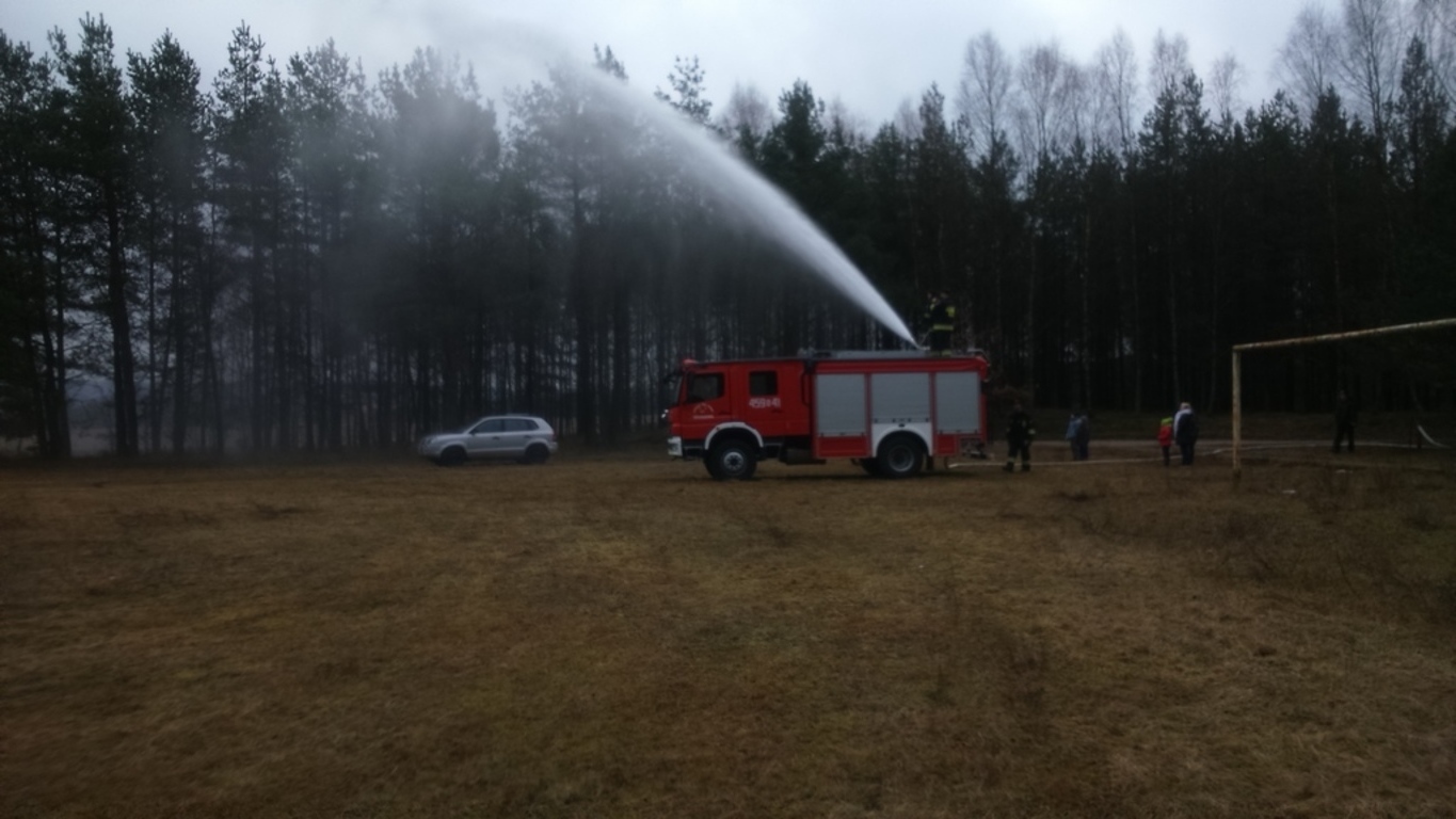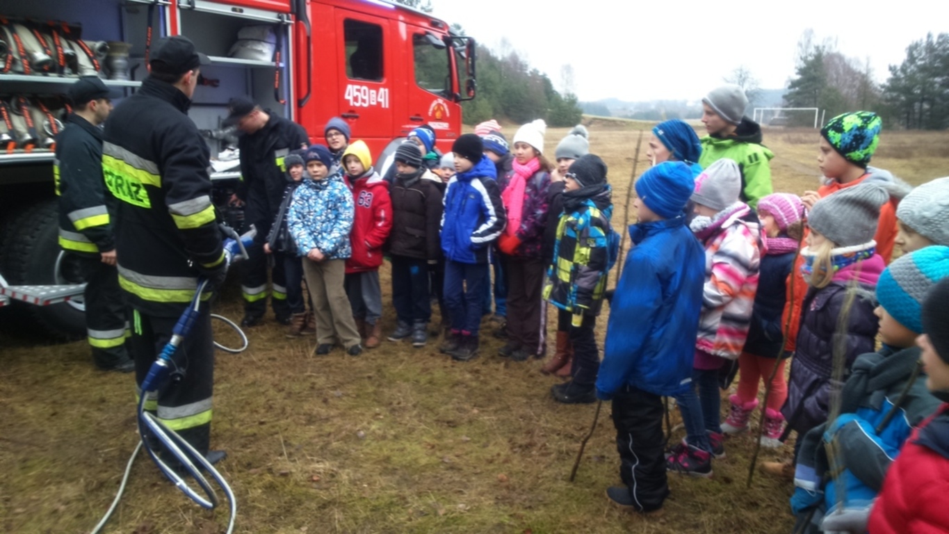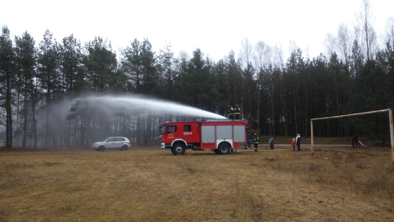 Pomimo braku śniegu, bawiliśmy się świetnie. Dzięki wsparciu Rady Sołeckiej i zaangażowaniu Pani sołtys Katarzyny Formela oraz Pań: Emilii Reiter, Marzeny Bogdan, Ewy Nowak spędziliśmy mile czas przy ognisku na pieczeniu kiełbasek. Płomień ogniska cały czas podtrzymywał, a nie było łatwo, Pan Zdzisław Knut. Korzystając z obecności strażaków mogliśmy poczuć się trochę jak Oni w akcji.