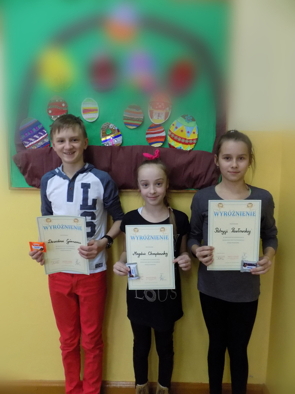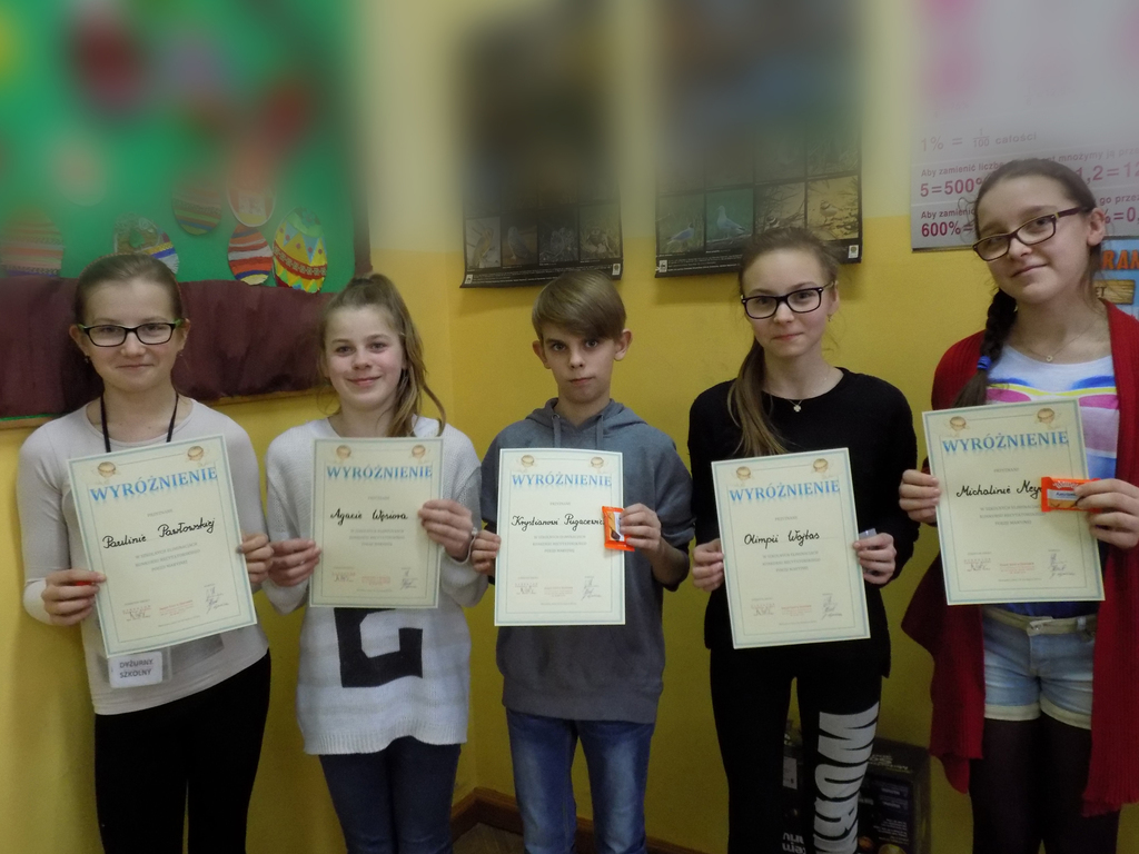 Uczniowie, którzy zajęli najlepsze miejsca, będą reprezentowali naszą szkołę 7 maja 2016 r. w kolejnym etapie diecezjalnym w Kościerzynie.