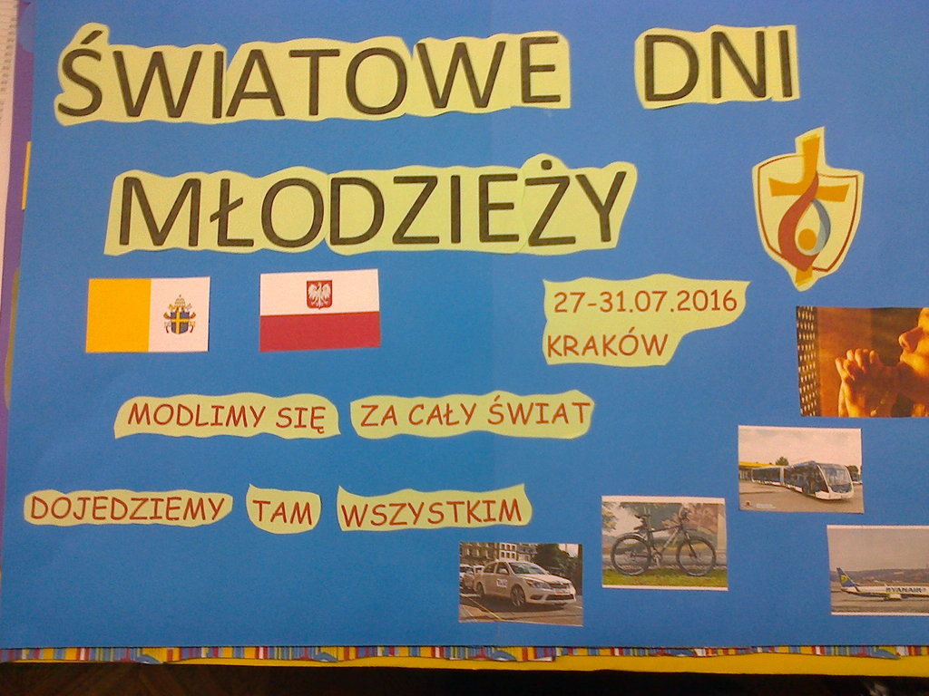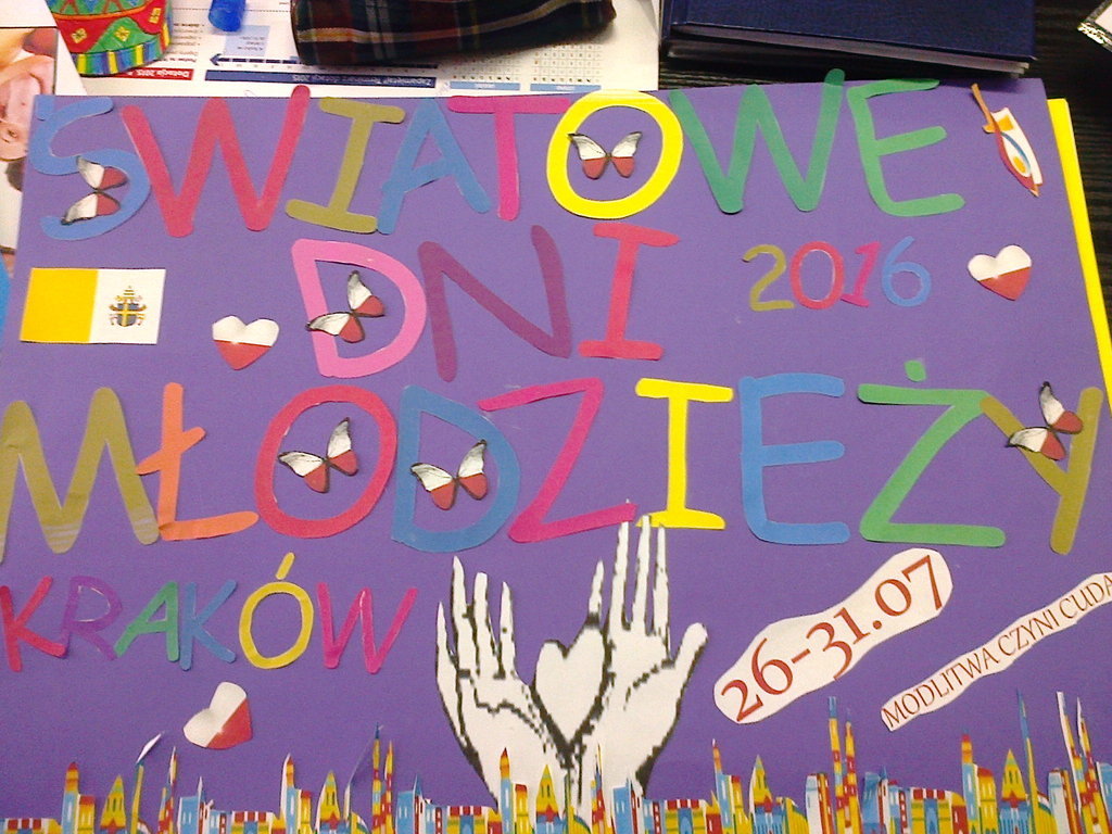 W kwietniu gimnazjaliści mogli wziąć udział w szkolnym konkursie plastycznym na wykonanie plakatu informującego o Światowych Dniach Młodzieży w Krakowie.