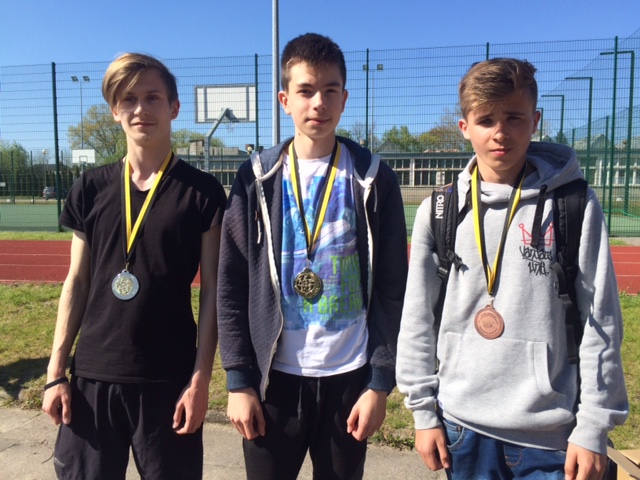 Nasi uczniowie zdobyli 5 medali (3 srebrne i 2 brązowe). Srebro wywalczyli: Daria Edel w biegu na 600m, Mateusz Biodrowski w biegu na 600m i sztafeta 4x100m chłopców. Brązowe krążki zdobyli: Agata Makurat w biegu na 600m i Marcin Felskowski w biegu na 2000m. Gratulujemy!