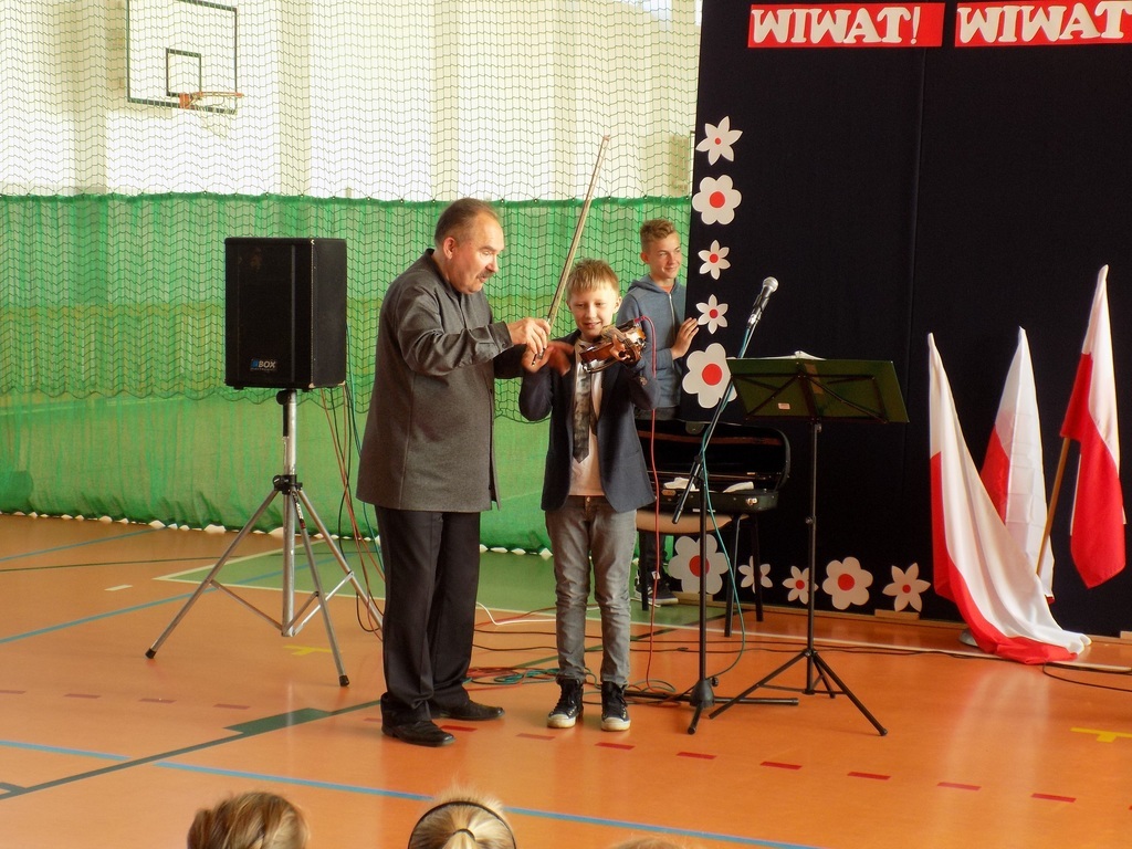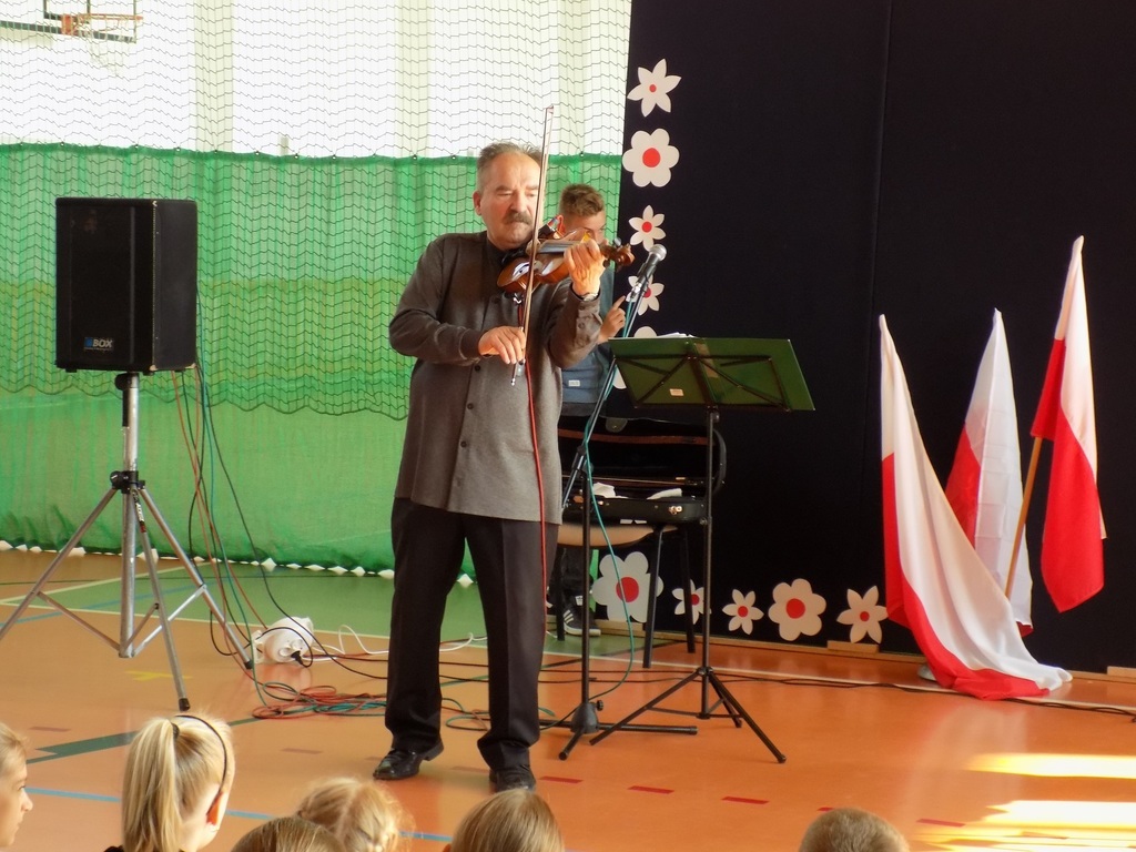 Prócz apelu uczniowie wysłuchali także koncertu „Przeboje mistrzów muzyki polskiej” w wykonaniu pomorskich muzyków - Leszka Boliboka oraz Rafała Rompcy. Artyści wykonali szereg utworów muzycznych z różnych epok, prezentujących różne style muzyczne. Były polonezy, mazurki, krakowiaki i pieśni najwybitniejszych polskich muzyków i kompozytorów - F. Chopina, S. Moniuszki, M.K. Ogińskiego, W. Kilara. Spotkanie z artystami stanowiło doskonałą żywą lekcję muzyki i patriotyzmu. Uczniowie nie tylko słuchali, ale razem z muzykami śpiewali „Rotę”, „Prząśniczkę” czy „Przybyli ułani pod okienko”. Niektórzy mieli również okazje spróbować gry na skrzypcach czy gitarze oraz dyrygować chórem swoich szkolnych kolegów.