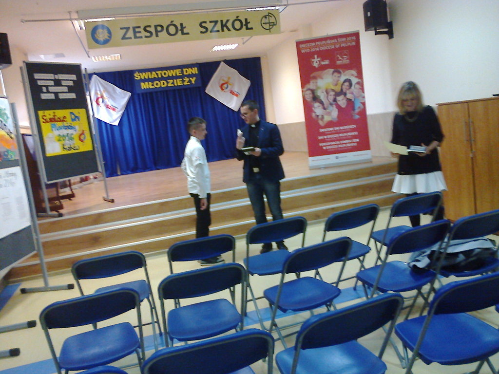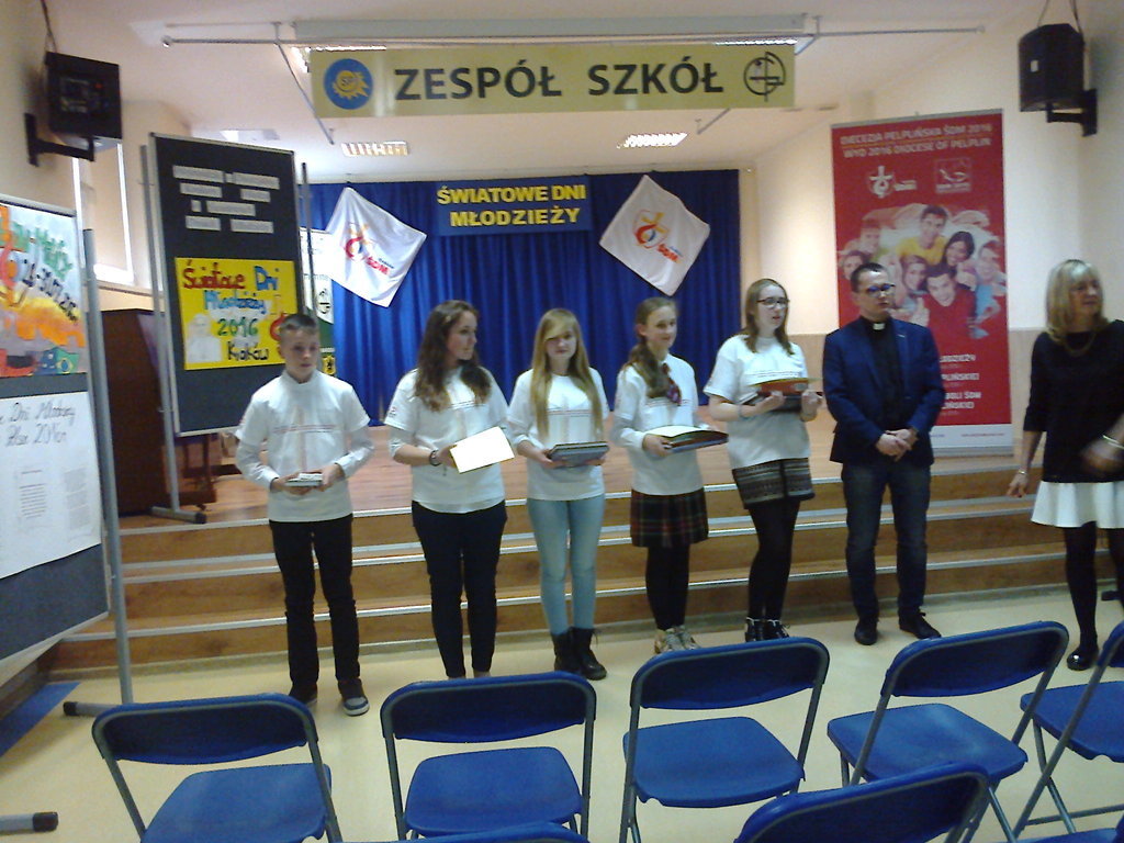 27 kwietnia 2016r. uczeń z naszej szkoły Sławomir Wica wziął udział w II etapie Konkursu Wojewódzko-Diecezjalnego z wiedzy o Światowych Dniach Młodzieży w Somoninie, zajmując tam piąte miejsce.
