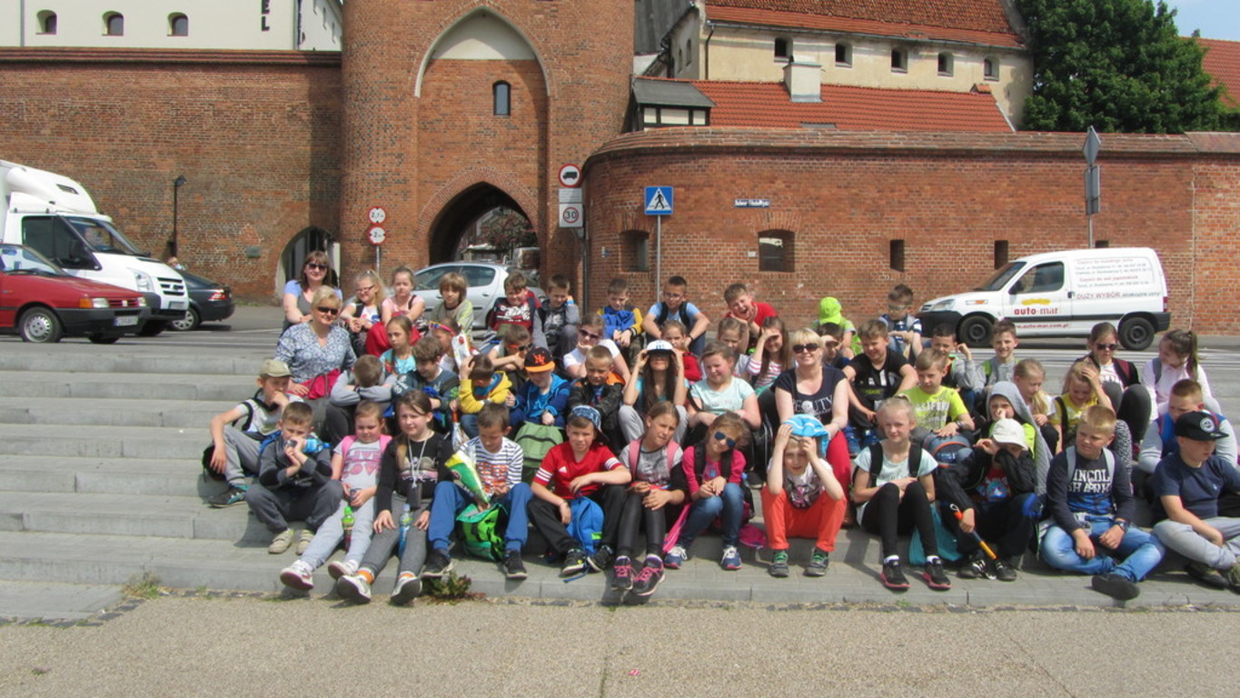 Zwiedzanie miasta rozpoczęło się od Krzywej Wieży, o której mówi się że ci, których grzechy są ciężkie, nigdy nie zdołają utrzymać równowagi, opierając się plecami o ścianę wieży. Naszych uczniów nie ominął ten swoisty "test prawości"… Po nim zobaczyli ruiny zamku krzyżackiego, który nigdy nie został zdobyty przez obcych najeźdźców. Dowiedzieli się, gdzie urodził się Mikołaj Kopernik, a w Katedrze Świętojańskiej odwiedzili Kaplicę Kopernikowską z chrzcielnicą, przy której chrzczono przyszłego astronoma. Wędrując jego śladami, dotarli do Planetarium, gdzie pochłonęła ich świetna zabawa. Na interaktywnej wystawie w Sali Geodium mogli samodzielnie poeksperymentować, przekonać się, dlaczego mamy cztery pory roku, zobaczyć wybuchający wulkan czy zorzę polarną.