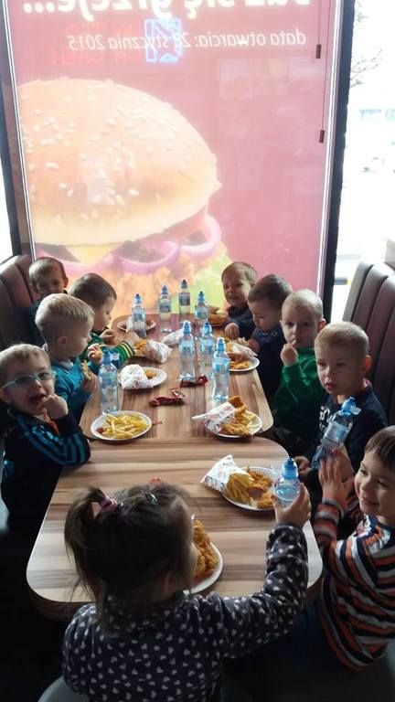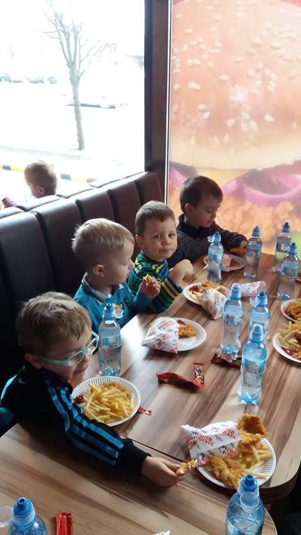 zjeżdżalnie, duże samochody, plastikowe domki oraz kąciki zainteresowań. Każdy znalazł coś dla siebie, a 1 godzina zabawy minęło bardzo szybko! Zadowoleni i zmęczeni na konie wycieczki wybrali się do restauracji.