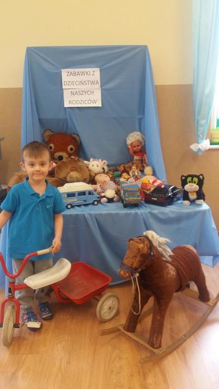 W grupie 3- latków zorganizowano wystawę "Zabawki z dzieciństwa naszych rodziców", a to wszystko dzięki naszym rodzicom, którzy pomogli w zbiorze eksponatów. To sentymentalna podróż do czasów dzieciństwa.
