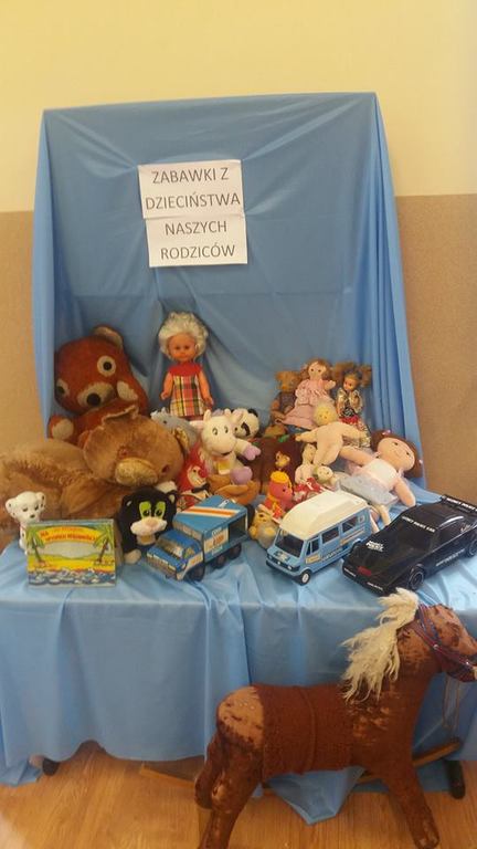 Celem wystawy było przede wszystkim ukazanie dzieciom, czym bawili się ich rodzice oraz jak wyglądały dawniej zabawki. Wśród eksponatów można było podziwiać stare lalki, misie, samochody, książeczki, a także konia na biegunach. Nie zabrakło także rowerka, o którym każde dziecko w dawnych czasach marzyło .