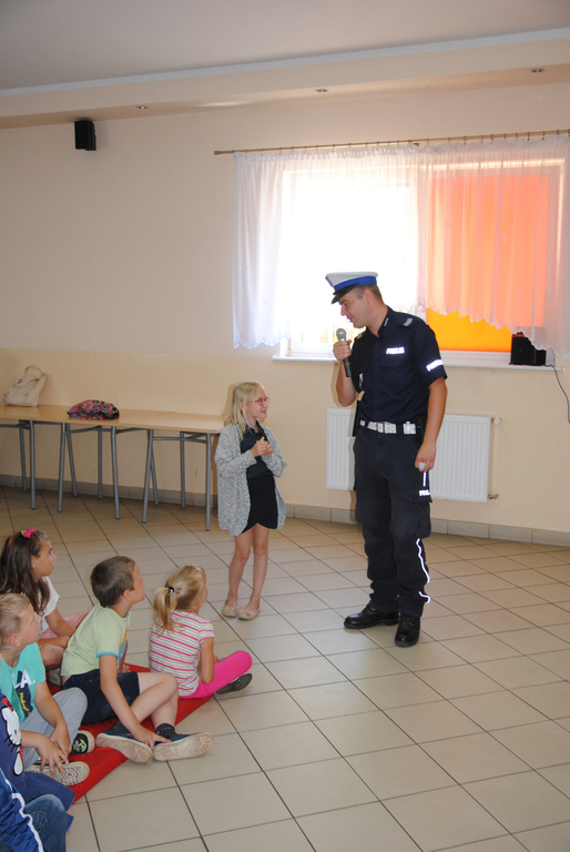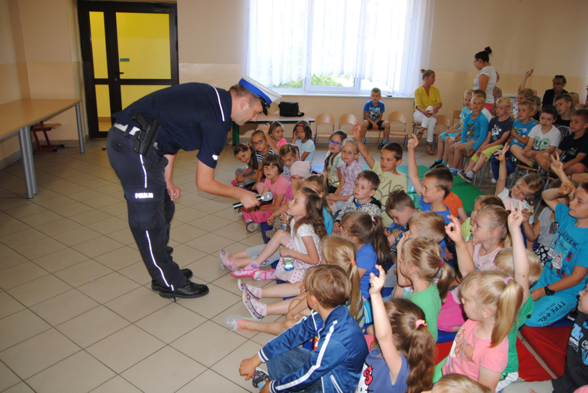 Funkcjonariusze uczyli najmłodszych jak bezpiecznie poruszać się po drodze i pod jakie numery alarmowe dzwonić,gdy potrzebna jest pomoc policjantów, strażaków albo pogotowia. Funkcjonariusze instruowali najmłodszych jak bezpiecznie poruszać się po drodze, do czego służą odblaski i kamizelki odblaskowe i jak przechodzić bezpiecznie po przejściach dla pieszych. Najmłodsi potrafi wykazać się wiedzą numerów alarmowych, wiedzieli gdzie dzwonić, gdy potrzebna jest pomoc policjantów, strażaków albo