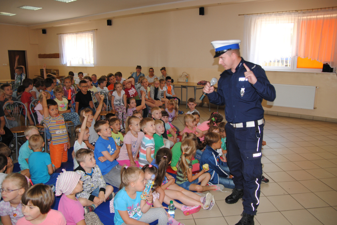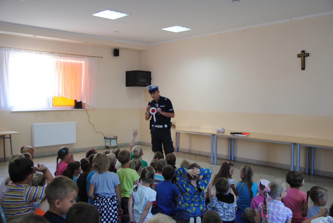 Funkcjonariusze rozmawiali również o tym, jak bezpiecznie bawić się w domu i na podwórku. Przestrzegali także, aby dzieci nie wchodziły do stawów i jezior bez opieki osób dorosłych.