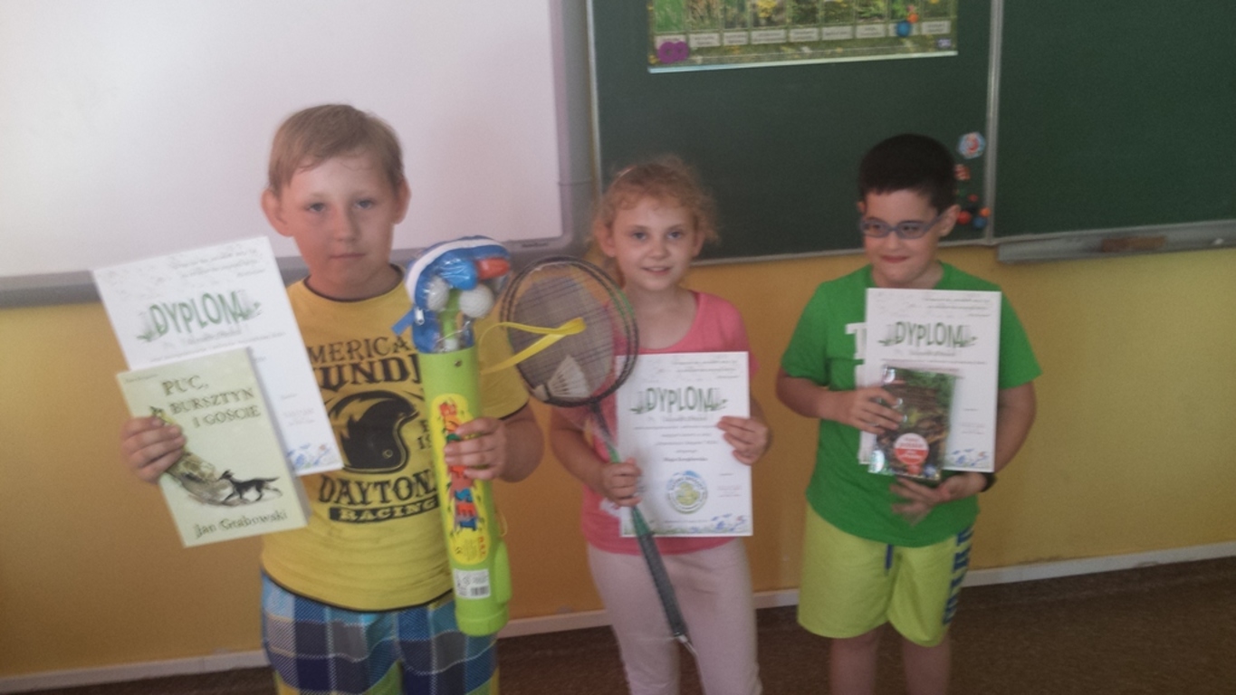 Z radością informujemy, że zebraliśmy 1578 kg zużytych baterii. Wszystkim którzy brali udział w tym konkursie i przynosili każdą ilość baterii (nawet po kilka czy kilkanascie sztuk) bardzo dziękujemy ! To nasz wspólny sukces ! Jesteśmy laureatami w skali ogólnopolskiej! Szczególne podziękowania kierujemy do uczniów kl.IIa ,którzy zebrali największą ilość baterii. Bezkonkurencyjnymi liderami zostali właśnie uczniowie z IIa :OLIWIER WEJER (31546sztuk) , MAJA KROPLEWSKA (18612 szt.) , KAROL PALUSZYŃSKI (2901szt.) . Uczniowie kl.VI zajęli II miejsce w szkole, a najwięcej zebrali-OKTAWIA SYNAKOWSKA (1812szt) , ŁUKASZ WRYCZA (1176szt.) III miejsce w szkole zdobyła kl. V -liderem został KAMIL STENCEL (1003szt.) . Czwarte miejsce w szkole zdobyła klasa IVa , a liderami u nich zostały: NIKOLA GAŁAZIN (365 szt.) i ALEKSANDRA KUBISZ (350 szt.). Klasa III zdobyła w szkole V miejsce i liderką została AMELIA FORMELA (289 szt.) Na wyróżnienie zasłużylI jeszcze : ADRIAN SYNAKOWSKI , WIKTOR WOJCIECHOWSKI , ANNA MAKURAT oraz najmłodsi : MARTA PALUSZYŃSKA , AGNIESZKA NEUBAUER , ANTONI BOSZK , ZOSIA KULASZEWICZ, DAWID JAKUBEK , KACPER JERECZEK, AGATA WIKA, MACIEJ PEPLIŃSKI ALEKS GRAU. GRATULUJEMY !!! Słowa podziękowania za prace zawiązane z pakowaniem baterii i opisywaniem pojemników, układaniem...kierujemy do KRZYSZTOFA PATELCZYKA z kl.VI ,który przez cały okres czuwał nad stroną transportu zebranych baterii.Pomagali mu też :Krystian Pugacewicz, Łukasz Wrycza, Mateusz Wica i inni. Cieszymy się ,że pogadanki ekologiczne, które przeprowadzaliśmy na zajęciach świetlicowych ,na lekcjach przyrody, na zajęciach z wychowawcami klas, dały taki oddżwięk i zarazem spełniony obowiązek w stosunku do naszego naturalnego otoczenia.Biorąc udział w takich akcjach kształtujemy u dzieci prawidłowy i odpowiedzialny stosunek do ochrony środowiska oraz kształtujemy ich wrażliwość i postawy etyczno-moralne.