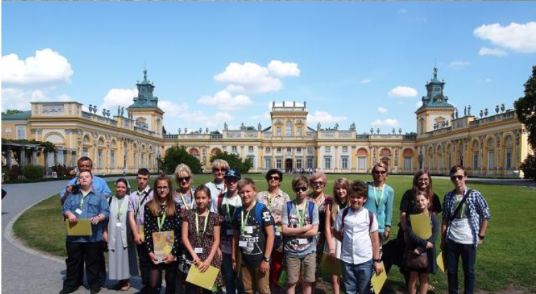 16.06.2016r.- na zaproszenie Organizacji Odzysku REBA, reprezentacja z naszej szkoły pojechała do Warszawy na OGÓLNOPOLSKI FINAŁ I EDYCJI KONKURSU "EDUKUJEMY-POMAGAMY". W składdzie naszej reprezentacji mieli jechać uczniowie z kl.IIa -liderzy tj. Dominik Wejer, Maja Kroplewska i Karol Paluszyński, ale ze względu na długą trasę zrezygnowali. Reprezentowali nas kolejni liderzy z innych klas: z kl.IVa Nikola Gałazin, z kl. V Kamil Stencel i z kl.VI, która zdobyła II miejsce w szkole -Oktawia Synakowska i Krzysztof Patelczyk. Jako placówka oświatowa, reprezentowaliśmy województwo pomorskie ,w którym zajęliśmy I miejsce . W Warszawie , na spotkaniu MISTRZÓW POLSKI w Centrum Kultury Wilanów, tryumfowaliśmy jako III szkoła w Polsce (w kateg.szkoły podstawowe). Przyjęto nas bardzo serdecznie . Podczas prezentacji wyników byliśmy zaszczyceni III miejscem w Polsce ,odebraliśmy gratulacje, podziękowania i zaproszenie do dalszej współpracy. Nagrodami dla szkoły były książki, zestawy gier edukacyjnych, puzzle,które przekazaliśmy do świetlicy.Uroczystość była pięknie przygotowana i uatrakcyjniona oprawą muzyczną - występowali absolwenci szkoły muzycznej- wychowankowie ośrodka dla dzieci niewidomych w Laskach.Kolejnym punktem programu były warsztaty przyrodnicze w ogrodach Muzeum Pałacu Króla Jana III w Wilanowie. Tam , w przepięknej scenerii niepowtarzalnych kompozycji zieleni, kwiatów ...dzieci miały możliwość poznać historię Wilanowa, okazy różnych roslin i zwierząt. Otrzymując karty pracy i wypełniając je, sprawdzali stopień zapamiętania przekazanych informacji przez panią przewodnik. Zwiedziliśmy także kościół Św.Anny w Wilanowie,który wzniesiono w 1772r.z fundacji ówczesnego właściciela Wilanowa-księcia Augusta Adama Czartoryskiego. Natępnie, organizatorzy spotkania MISTRZÓW , zaprosili wszystkie reprezentacje szkół do restauracji na uroczysty obiad.Tam jeszcze raz podziękowano nam za wspaniały wynik w konkursie i za wielką pracę , którą czynimy na rzecz ochrony środowiska.Pan Zenon Telman , Prezes Zarządu REBA OOS.A. prosił o przekazanie podziękowań wszystkim , którzy przyczynili się do tego sukcesu - dzieciom i ich wspaniałym rodzicom-za ogromną pomoc w akcji na rzecz ochrony środowiska.Dzieci wróciły ze stolicy pełne niezapomnianych wrażeń.