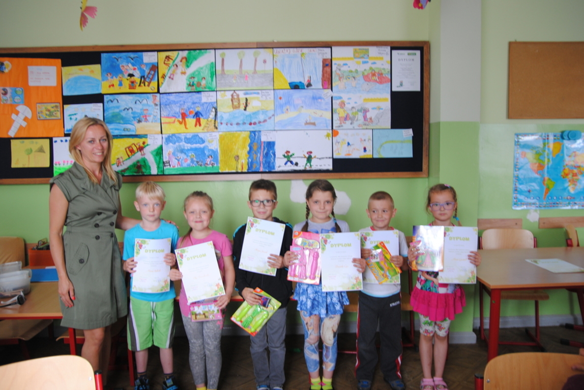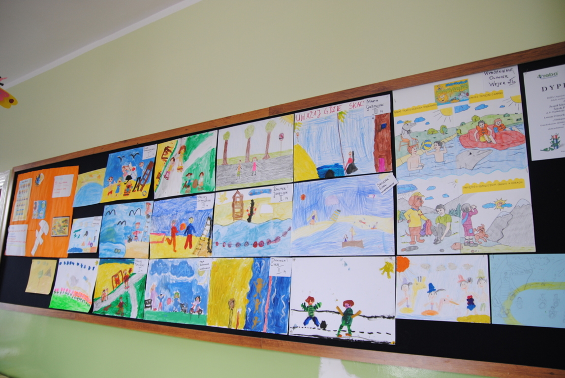 22 czerwca 2016 roku został rozstrzygnięty konkurs plastyczny pt. " Bezpieczne wakacje". Konkurs był adresowany do dzieci z klas I-VI. Celem konkursu było zwiększenie poziomu bezpieczeństwa dzieci i młodzieży w podróży, w górach, nad morzem, czy w czasie spędzania wolnego czasu, uwrażliwianie na konieczność poprawnego poruszania się na drodze, stoku. Spośród wszystkich prac jury w składzie: p. Ewy Knut, Małgorzaty Mielewczyk, Emilii Breska nagrodziło i wyróżniło najciekawsze