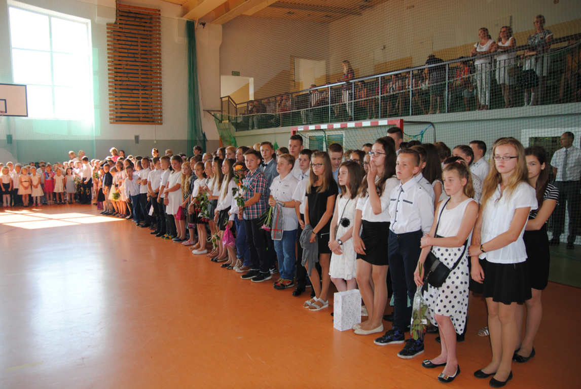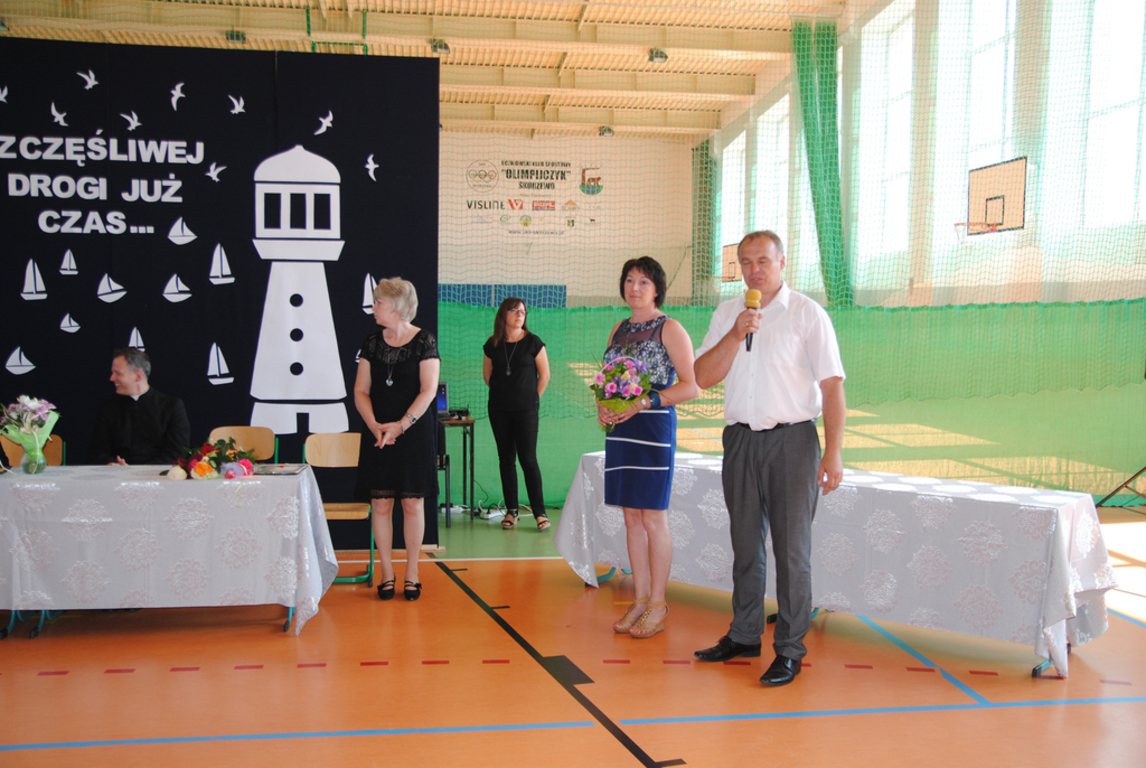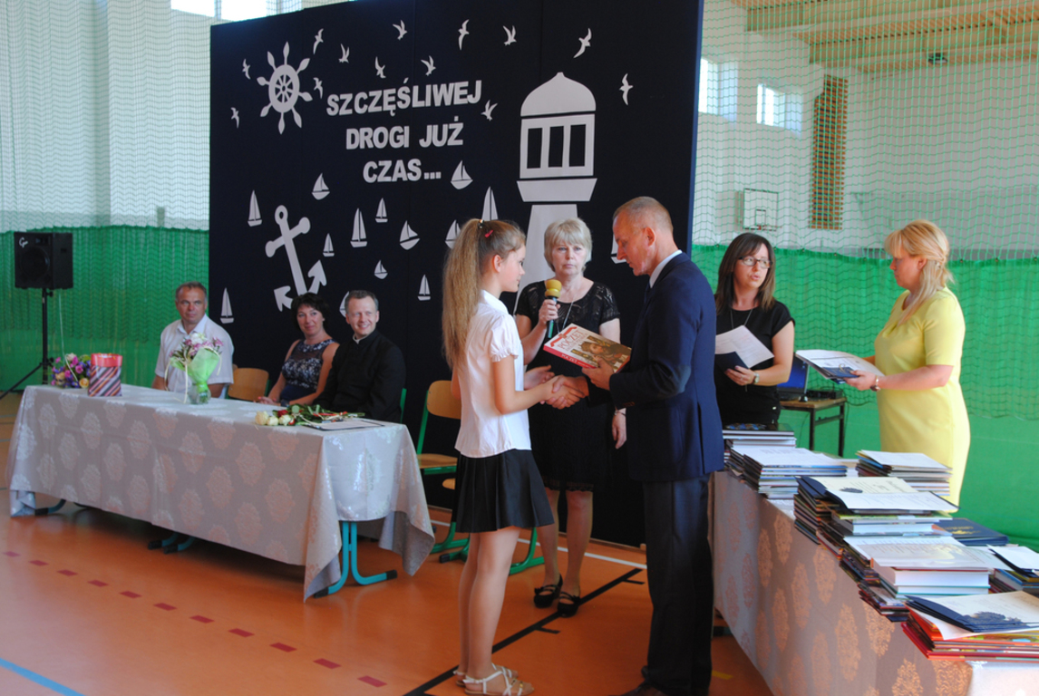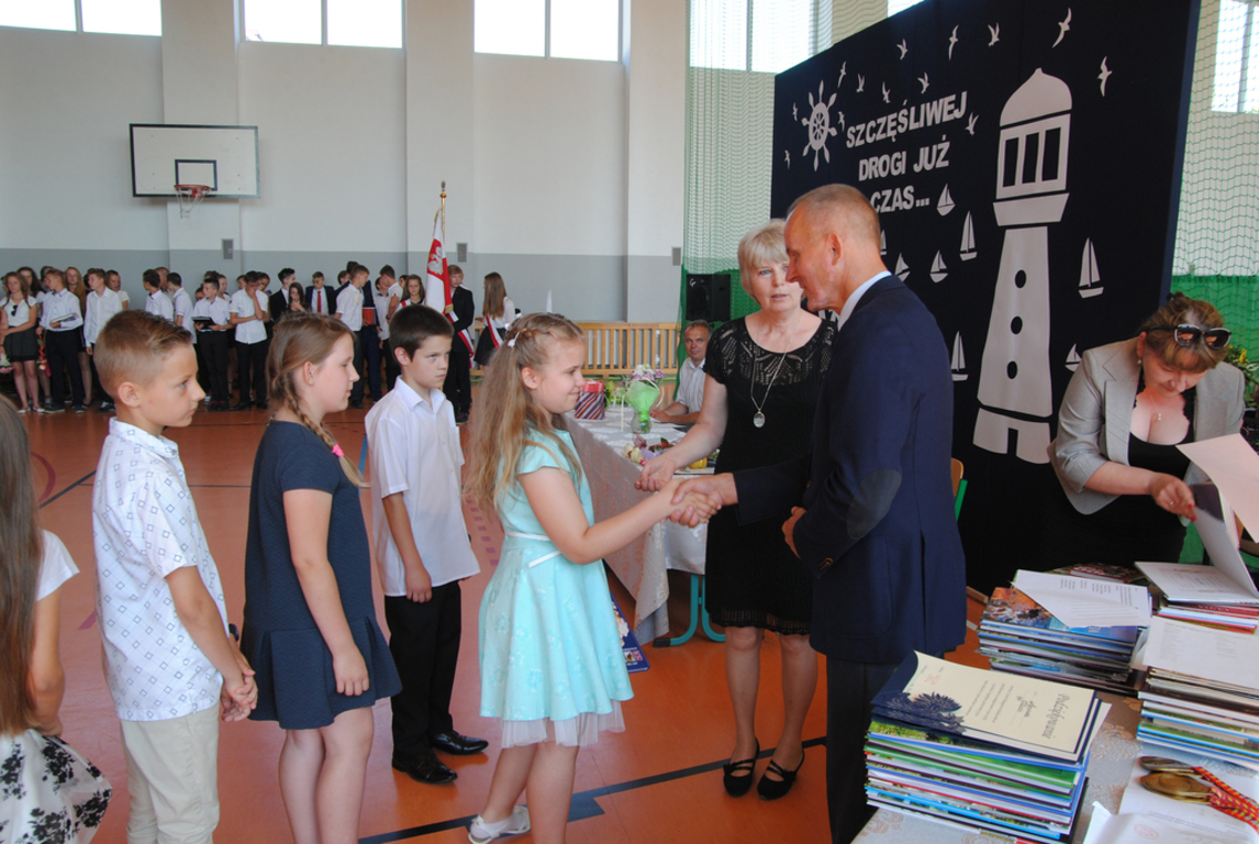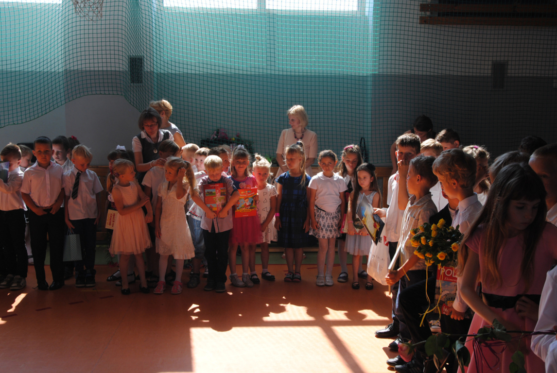 Na początku Pani Dyrektor dokonała podsumowania pracy w minionym roku szkolnym, zwracając uwagę na wyniki w nauce. Podziękowała też pracownikom szkoły i uczniom za ich zaangażowanie w kształtowanie dobrego wizerunku szkoły. Podczas uroczystości wręczano najlepszym uczniom świadectwa z wyróżnieniem oraz listy gratulacyjne Rodzicom wyróżnionych uczniów. Uczniowie odbierała nagrody za swą wzorową postawę i aktywność oraz za udział w konkursach. Następnie głos zabrali zaproszeni Goście, dziękując