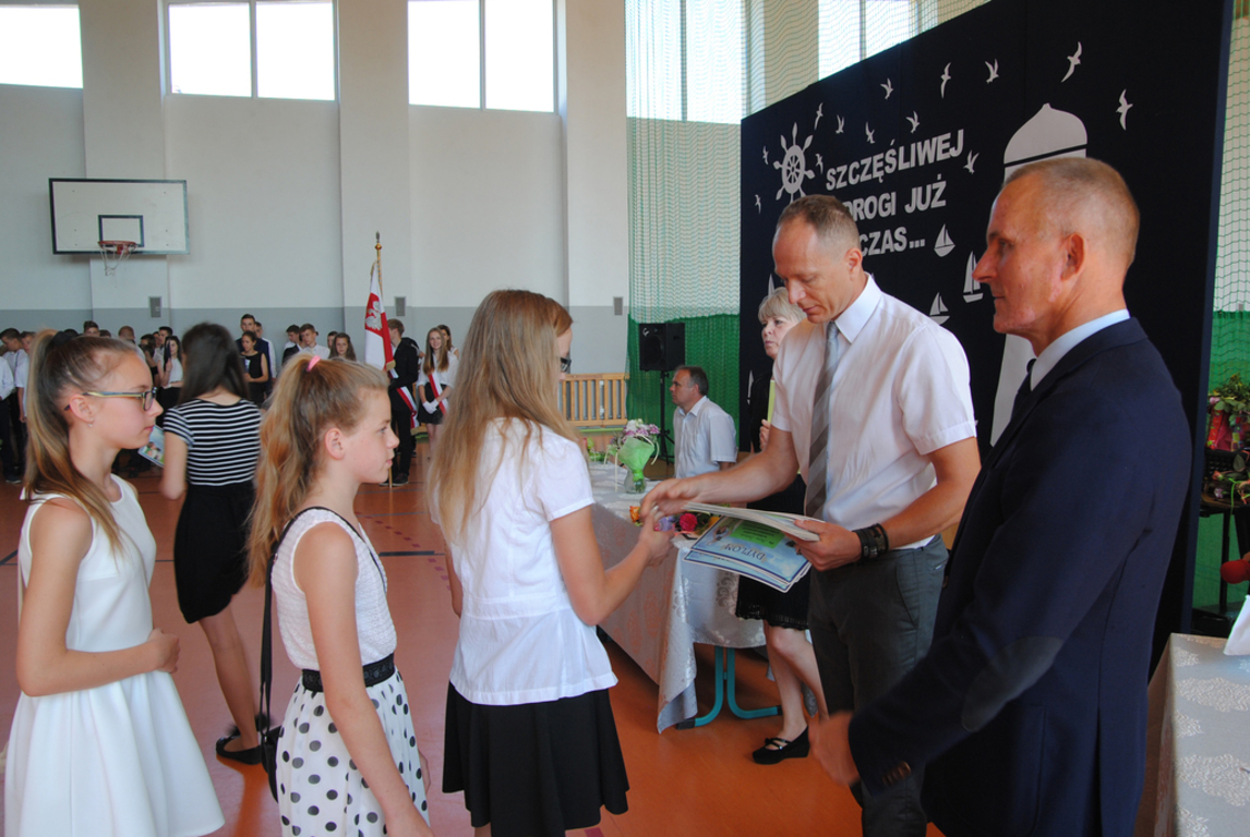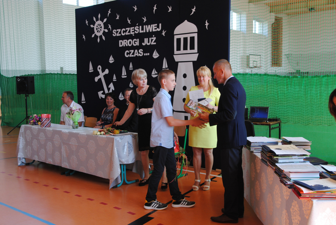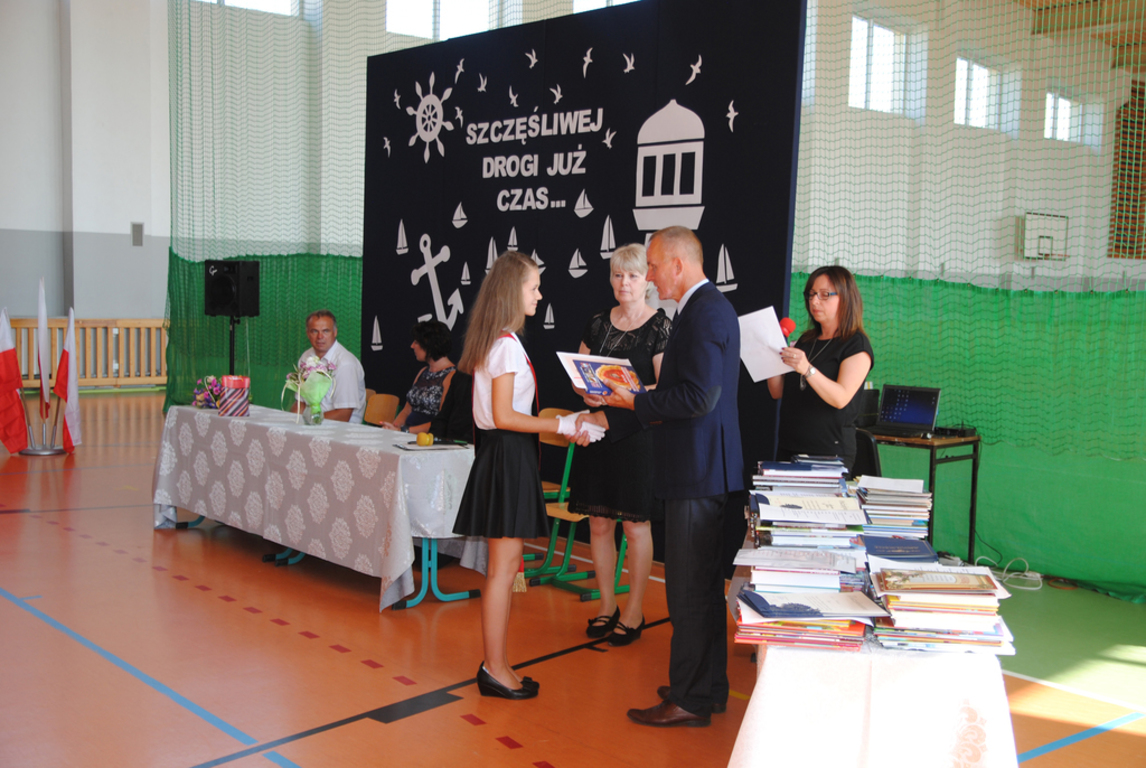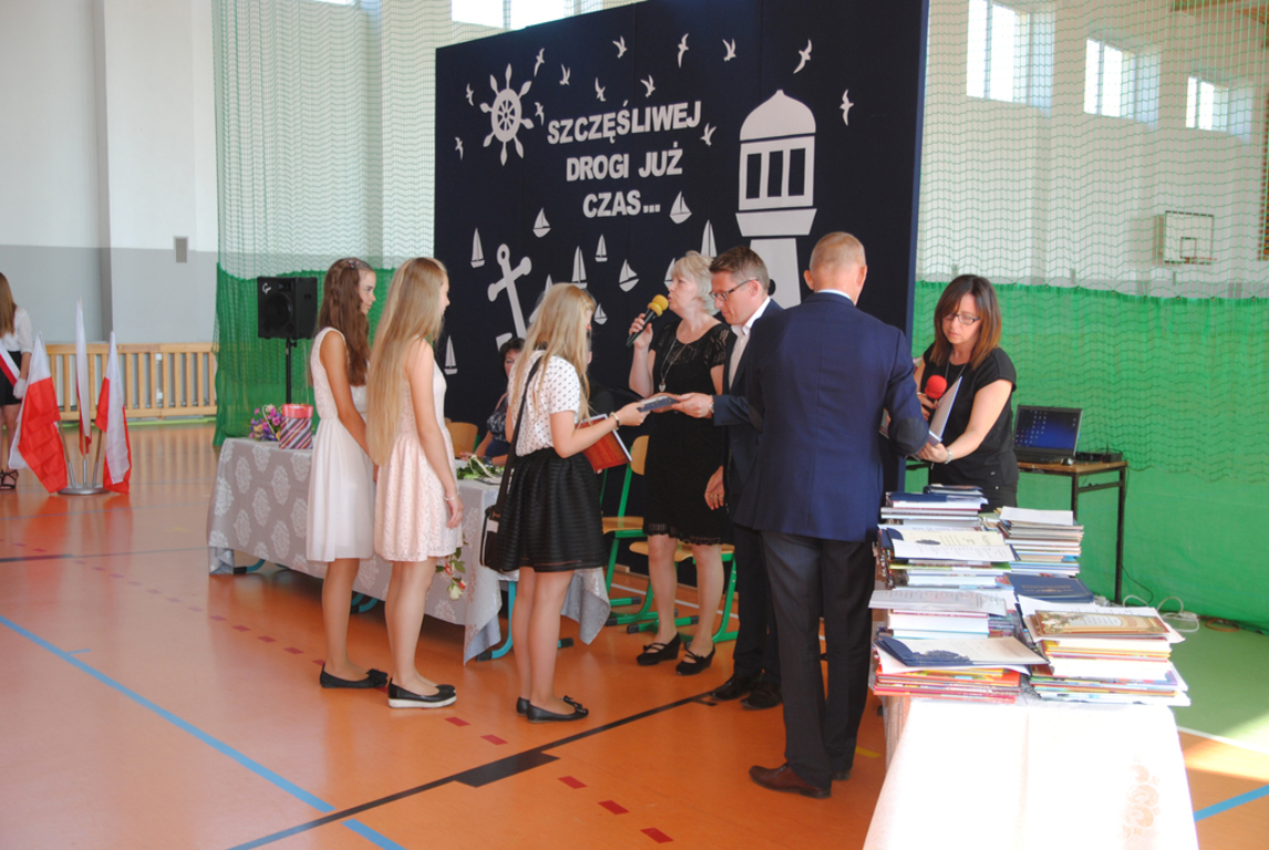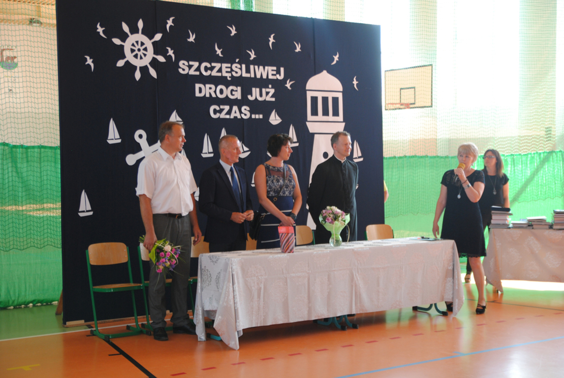 Na początku Pani Dyrektor dokonała podsumowania pracy w minionym roku szkolnym, zwracając uwagę na wyniki w nauce. Podziękowała też pracownikom szkoły i uczniom za ich zaangażowanie w kształtowanie dobrego wizerunku szkoły. Podczas uroczystości wręczano najlepszym uczniom świadectwa z wyróżnieniem oraz listy gratulacyjne Rodzicom wyróżnionych uczniów. Uczniowie odbierała nagrody za swą wzorową postawę i aktywność oraz za udział w konkursach. Następnie głos zabrali zaproszeni Goście, dziękując