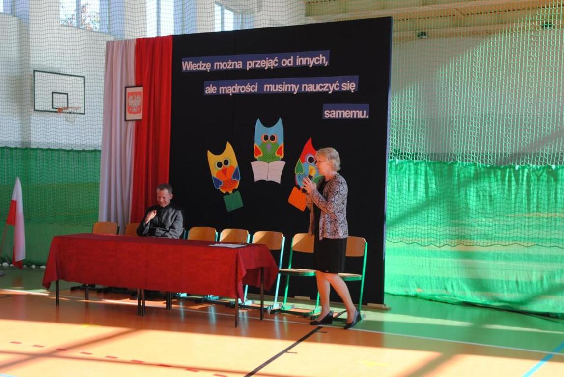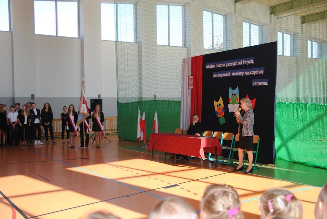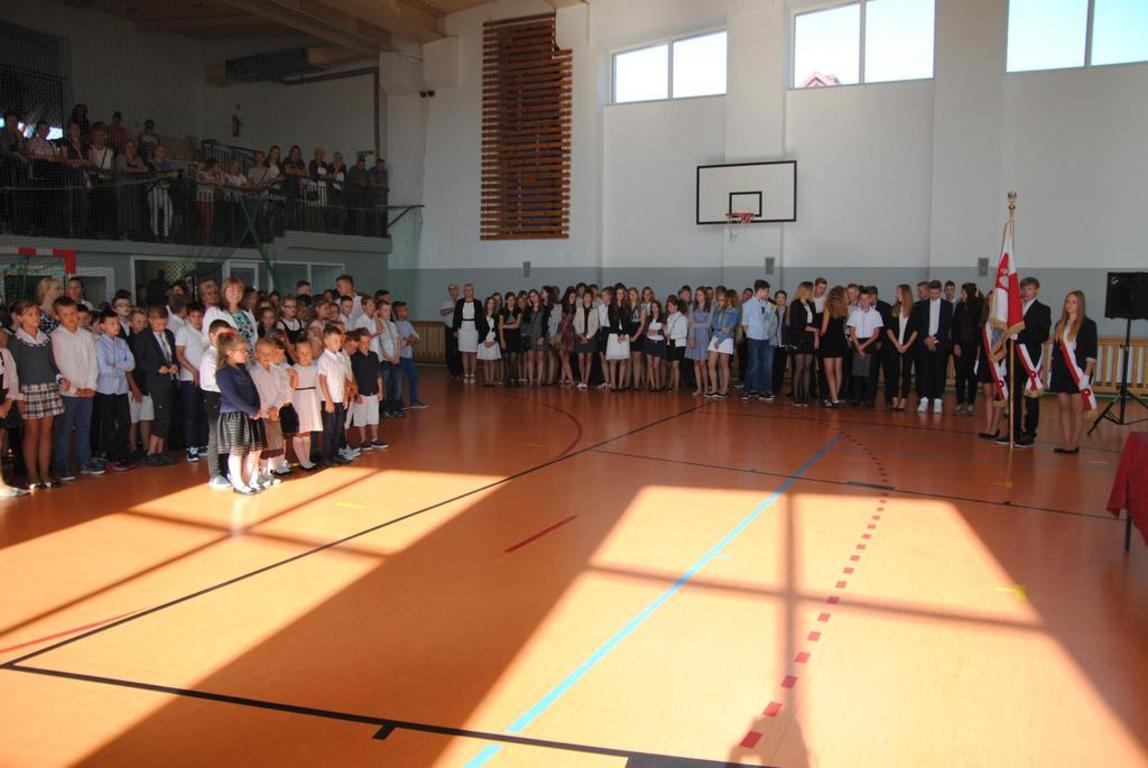 Uśmiechnięci, pełni energii i entuzjazmu przywitaliśmy się ze swoimi przyjaciółmi na uroczystym rozpoczęciu nowego roku szkolnego 2016/2017. Uroczystość poprowadziła Pani Dyrektor Maria Czekaj. Pani Dyrektor przypomniała nam wszystkim, jak bardzo ważne jest stawianie sobie kolejnych celów, które prowadzą do sukcesu, ukończenie kolejnej klasy, dobre oceny na świadectwie i dobry wynik na sprawdzianie gimnazjalistów.
