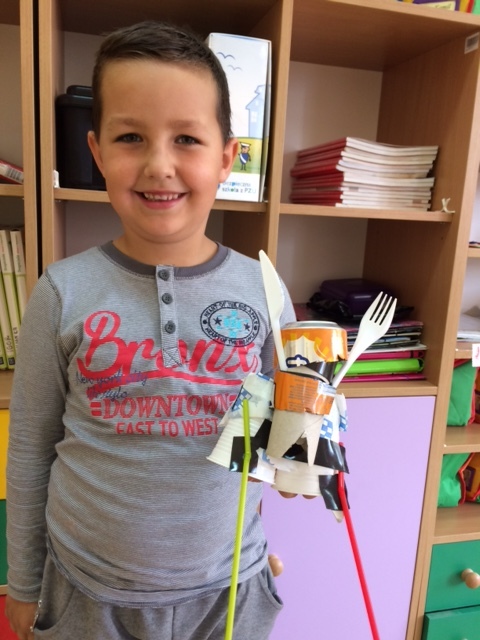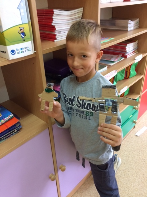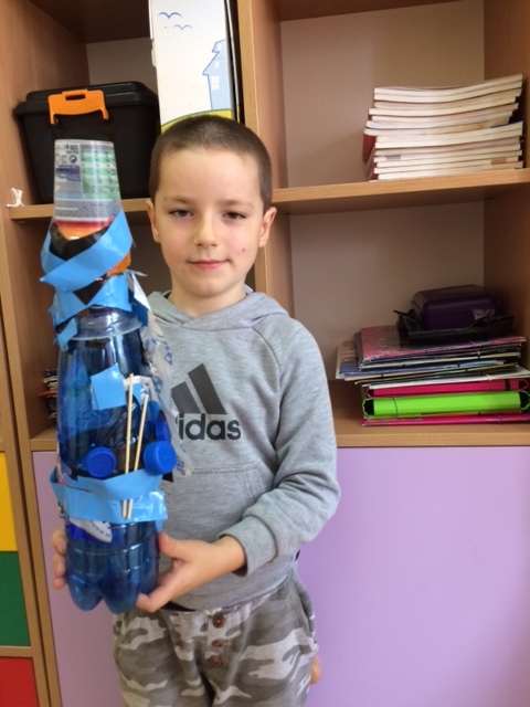 Kreatywność i pomysłowość uczniów klasy II B, którzy podczas zajęć plastyczno – technicznych budowali „ Śmieciowego stwora” z materiałów z odzysku, zaskoczyła nawet samych twórców.