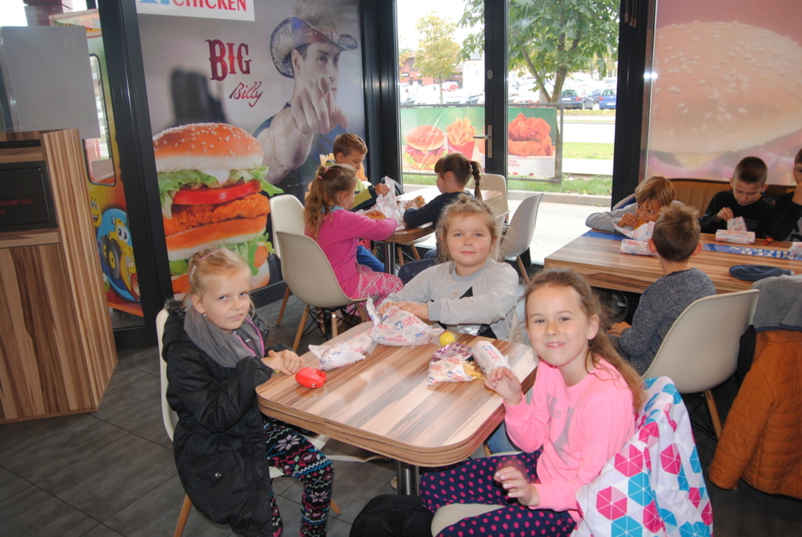 Po zakończonym seansie udaliśmy się na spacer na Rynek w Kościerzynie oraz pod pomnik J. Wybickiego. Nieopodal pomnika znajduje się United Chicken gdzie udaliśmy się coś zjeść.