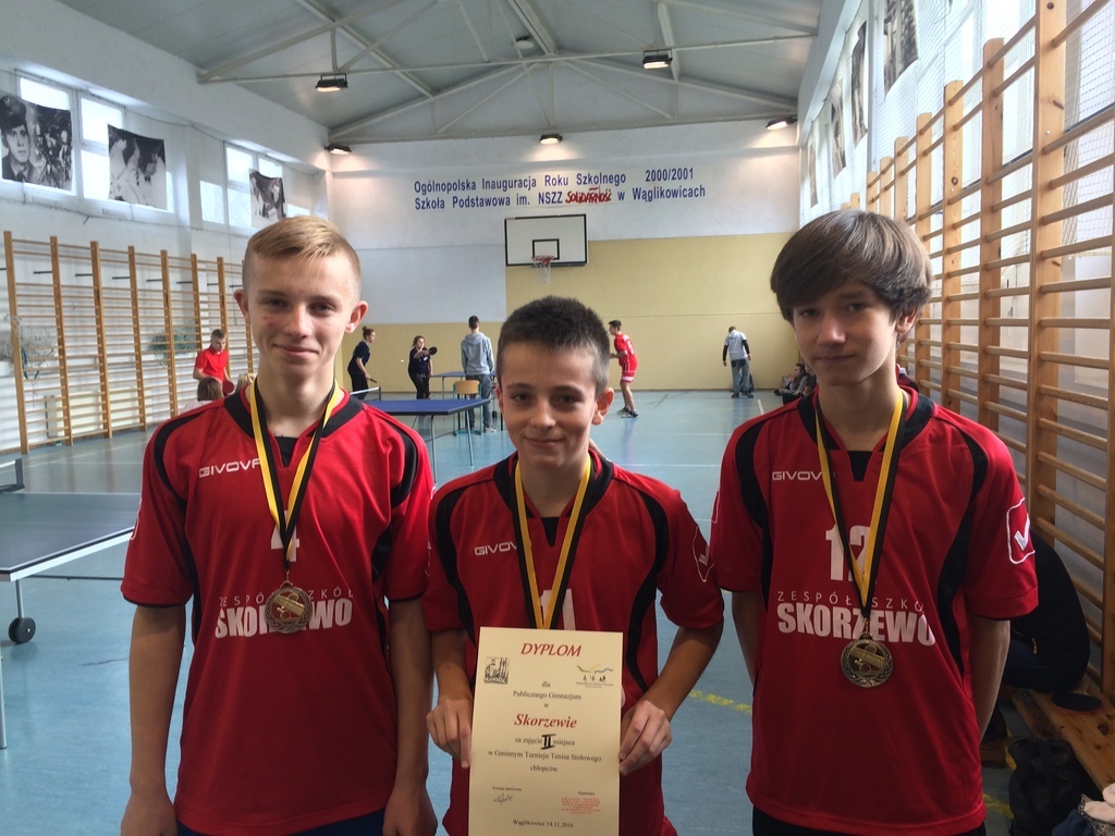 W poniedziałek, 14 listopada w Wąglikowicach odbył się gminny turniej tenisa stołowego w ramach Gimnazjady. Bardzo dobrze na tych zawodach zaprezentowali się nasi uczniowie zajmując 2 miejsca w rywalizacji dziewcząt i chłopców. Gratulujemy!