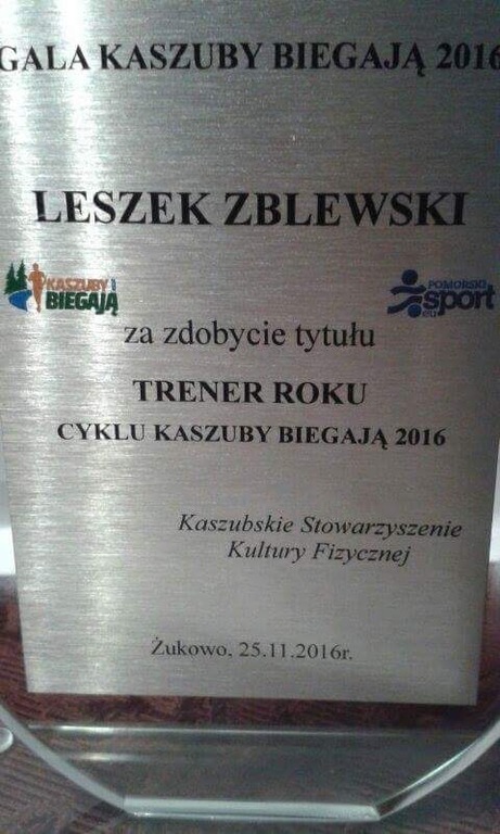 Wyróżnienie dla Trenera Roku Kaszuby Biegają 2016 otrzymał Pan Leszek Zblewski!