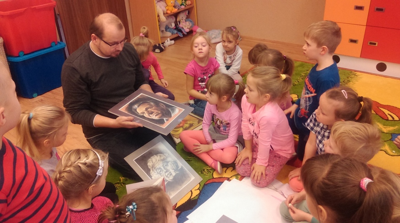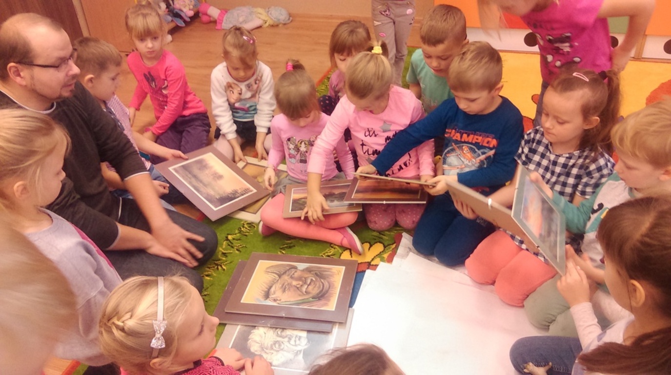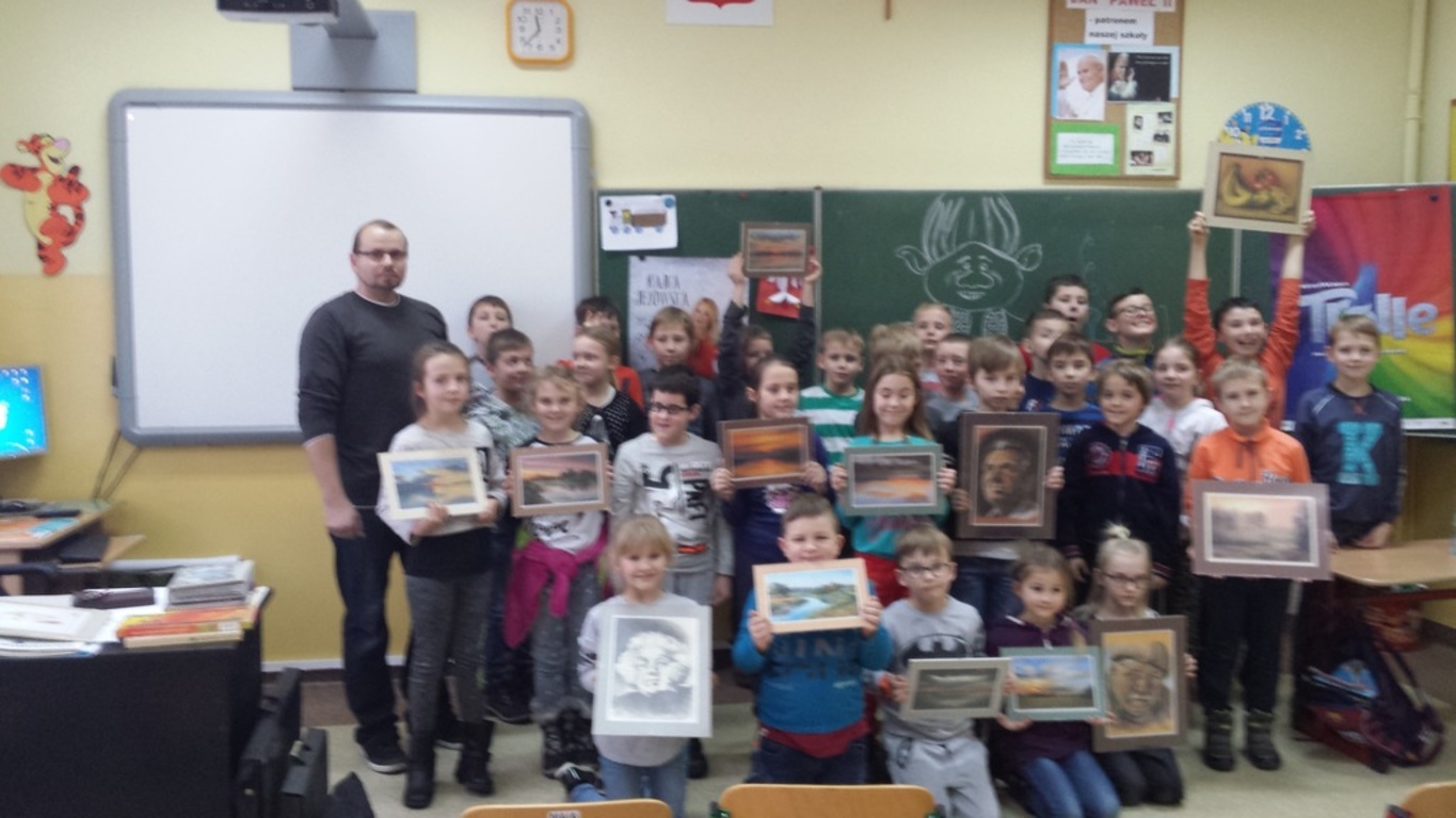 Dnia 1 grudnia 2016 r uczniowie klasy przedszkolnej i klas trzecich mieli okazję uczestniczyć w spotkaniu z artystą malarzem panem Arkadiuszem Neubauerem . Opowiadał uczniom o swojej wielkiej pasji jaką jest malowanie a szczególnie akwarele . Ten niezwykły człowiek to artysta samouk i amator Zdradził uczniom skąd bierze pomysły i inspiracje do swoich obrazów . Pokazywał swoje dzieła , opowiadał o nich, a w szczególności zachęcał dzieci do rozwijania swoich talentów. Pod okiem mistrza niektórzy mieli okazję do stworzenia własnych obrazów.