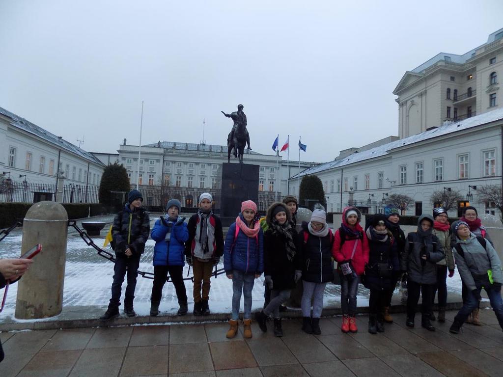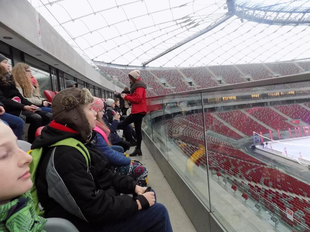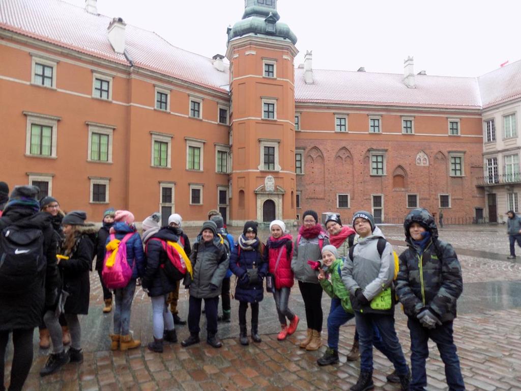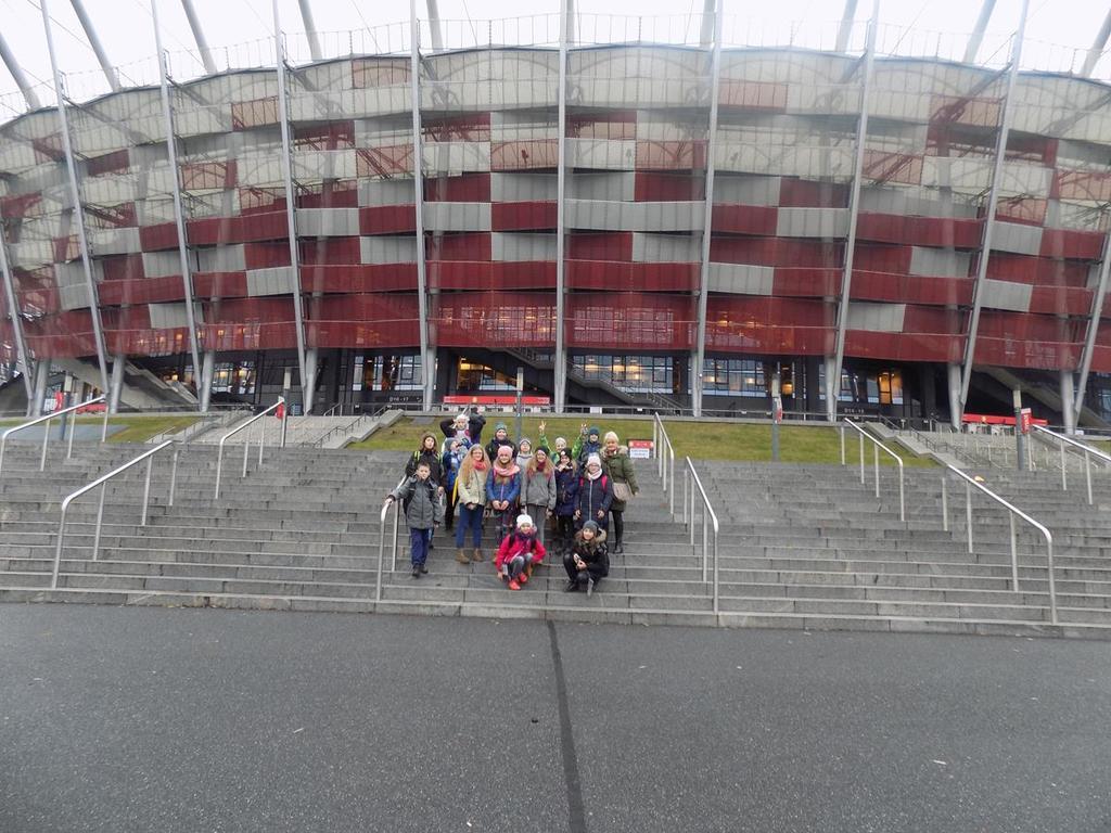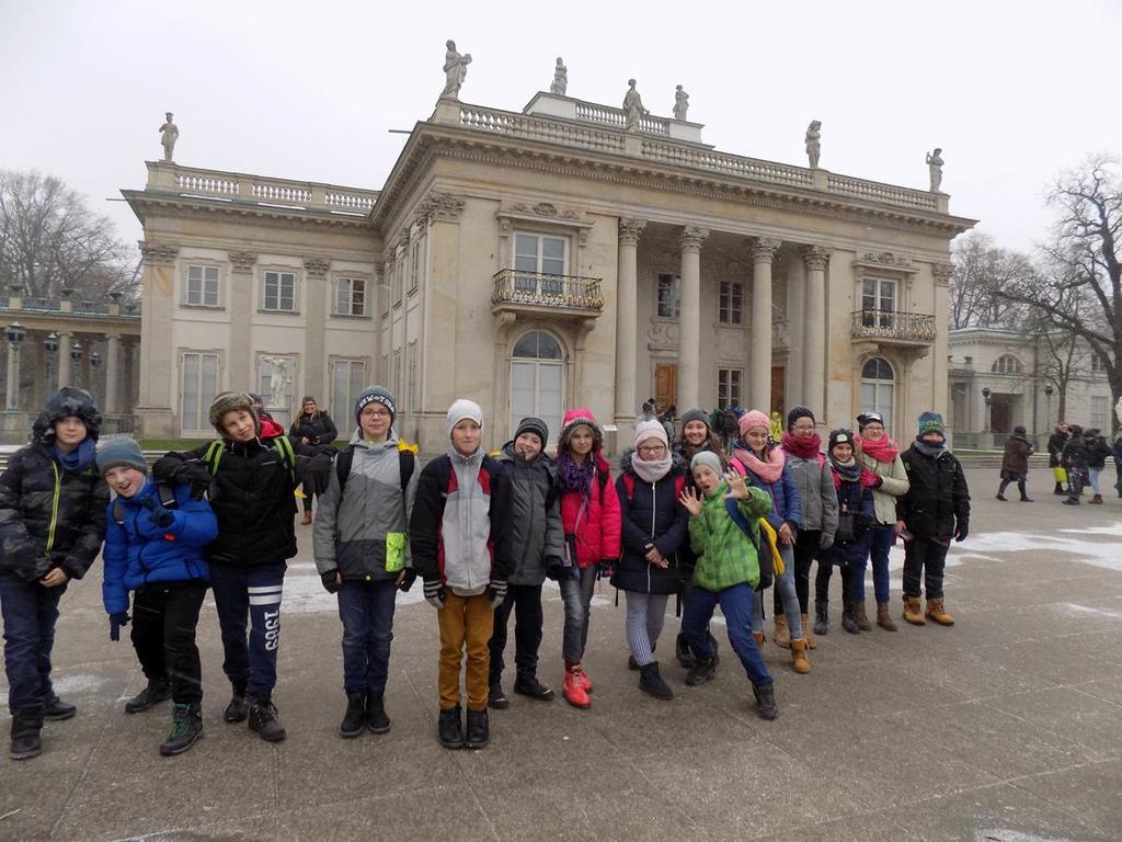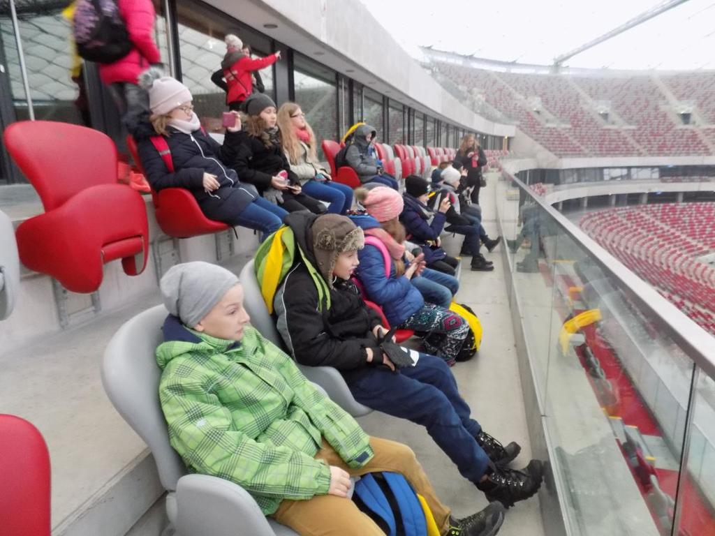 W dniach 30.11-01.12. uczniowie kl.Va mieli możliwość zwiedzenia najpiękniejszych miejsc w naszej stolicy. Lot z Rębiechowa do Warszawy wywarł na nas wspaniałe i niesamowite wrażenie.Zwiedzając Warszawę rozpoczęliśmy od tarasu widokowego na Lotnisku Chopina.Następnie podziwialiśmy uroki Parku Łazienkowskiego, cudowną galerię obrazów w Oranżerii, przepych w Pałacu Królewskim oraz przesympatyczne wiewiórki hasające po parku.Niesamowite wrażenie wywarł na nas Zamek Królewski-jego przepiękne komnaty i bogate wyposażenie wnętrz. Pod Kolumną Zygmunta dowiedzieliśmy się kto przeniósł stolicę z Krakowa do Warszawy.Nie mogliśmy ominąć Grobu Nieznanego Żołnierza oraz Pałacu Prezydenckiego. Piękno Warszawy podziwialiśmy z tarasu widokowego w Pałacu Kultury i Nauki.Dużo frajdy mieliśmy zwiedzając Muzeum Techniki.Drugi dzien pobytu zaczęliśmy od zwiedzania Stadionu Narodowego,należącego do najnowoczesniejszych obiektów sportowych na świecie. Tam to dopiero nasi chłopcy byli szczęśliwi! Pani przewodnik prowadziła nas po różnych pomieszczeniach , a odpoczęlismy chwileczkę w Loży Wipów.Kolejnym punktem był pobyt w Centrum Nauki Kopernik,które zwiedzają tysiące osób zainteresowanych nauką.Obejrzeliśmy tam również film w planetarium (3D) o wszechświecie-to było niesamowite przeżycie...Na terenie centrum zjedliśmy tez obfity obiad i potem biorąc udział w różnych eksperymentach gubiliśmy kalorie.Po wspaniale spędzonym czasie w Centrum Nauki Kopernik udalismy się na lotnisko.Niestety z powodu złych warunków atmosferycznych i tecznicznych w Rębiechowie-lot odwołano.Wróciliśmy ekskluzywnym autokarem z bagażem niezapomnianych wrazeń i wspaniałych wspomnień.Za pomoc w organizacji wycieczki do Warszawy dziękujemy P. Agnieszce Gałazin .