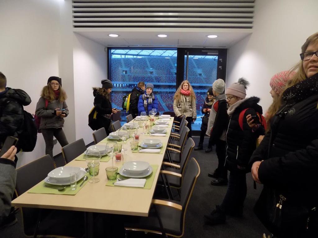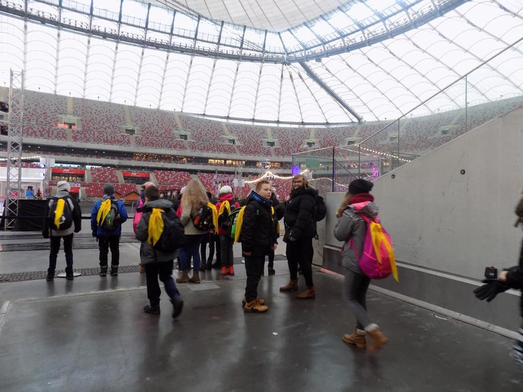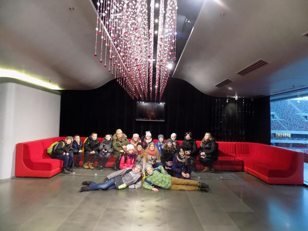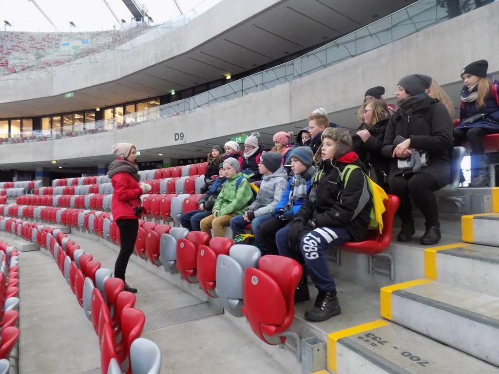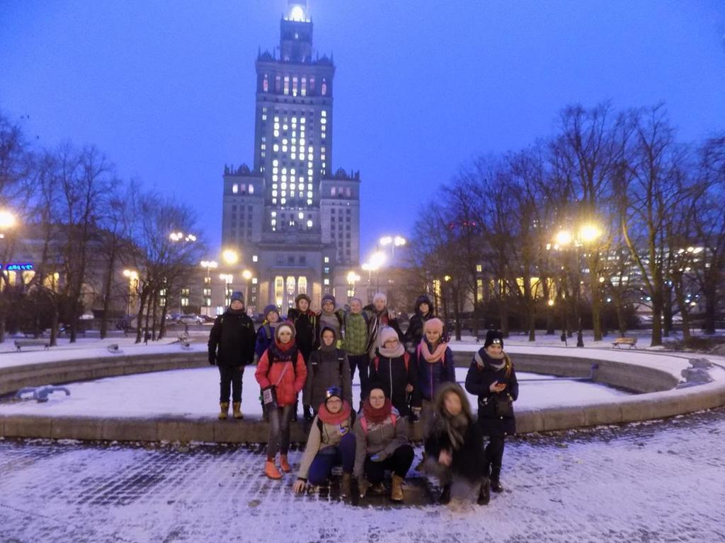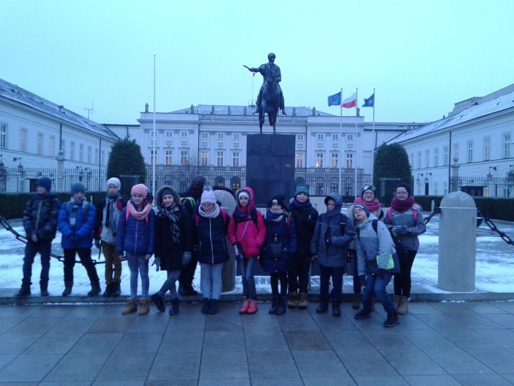 W dniach 30.11-01.12. uczniowie kl.Va mieli możliwość zwiedzenia najpiękniejszych miejsc w naszej stolicy. Lot z Rębiechowa do Warszawy wywarł na nas wspaniałe i niesamowite wrażenie.Zwiedzając Warszawę rozpoczęliśmy od tarasu widokowego na Lotnisku Chopina.Następnie podziwialiśmy uroki Parku Łazienkowskiego, cudowną galerię obrazów w Oranżerii, przepych w Pałacu Królewskim oraz przesympatyczne wiewiórki hasające po parku.Niesamowite wrażenie wywarł na nas Zamek Królewski-jego przepiękne komnaty i bogate wyposażenie wnętrz. Pod Kolumną Zygmunta dowiedzieliśmy się kto przeniósł stolicę z Krakowa do Warszawy.Nie mogliśmy ominąć Grobu Nieznanego Żołnierza oraz Pałacu Prezydenckiego. Piękno Warszawy podziwialiśmy z tarasu widokowego w Pałacu Kultury i Nauki.Dużo frajdy mieliśmy zwiedzając Muzeum Techniki.Drugi dzien pobytu zaczęliśmy od zwiedzania Stadionu Narodowego,należącego do najnowoczesniejszych obiektów sportowych na świecie. Tam to dopiero nasi chłopcy byli szczęśliwi! Pani przewodnik prowadziła nas po różnych pomieszczeniach , a odpoczęlismy chwileczkę w Loży Wipów.Kolejnym punktem był pobyt w Centrum Nauki Kopernik,które zwiedzają tysiące osób zainteresowanych nauką.Obejrzeliśmy tam również film w planetarium (3D) o wszechświecie-to było niesamowite przeżycie...Na terenie centrum zjedliśmy tez obfity obiad i potem biorąc udział w różnych eksperymentach gubiliśmy kalorie.Po wspaniale spędzonym czasie w Centrum Nauki Kopernik udalismy się na lotnisko.Niestety z powodu złych warunków atmosferycznych i tecznicznych w Rębiechowie-lot odwołano.Wróciliśmy ekskluzywnym autokarem z bagażem niezapomnianych wrazeń i wspaniałych wspomnień.Za pomoc w organizacji wycieczki do Warszawy dziękujemy P. Agnieszce Gałazin .