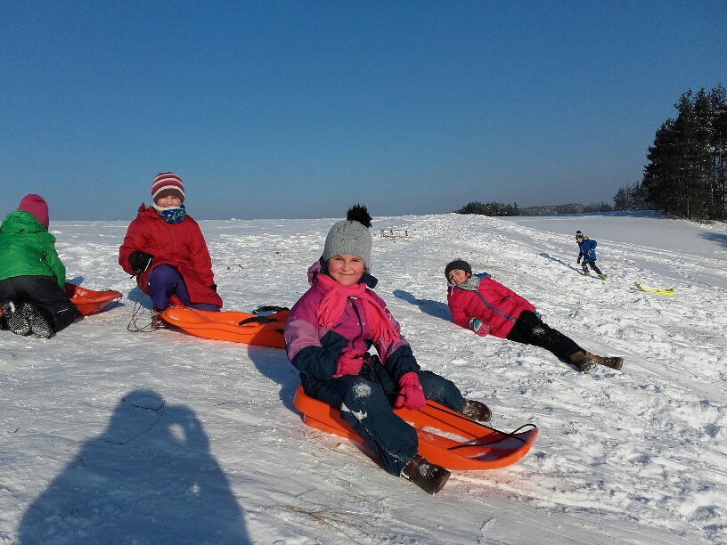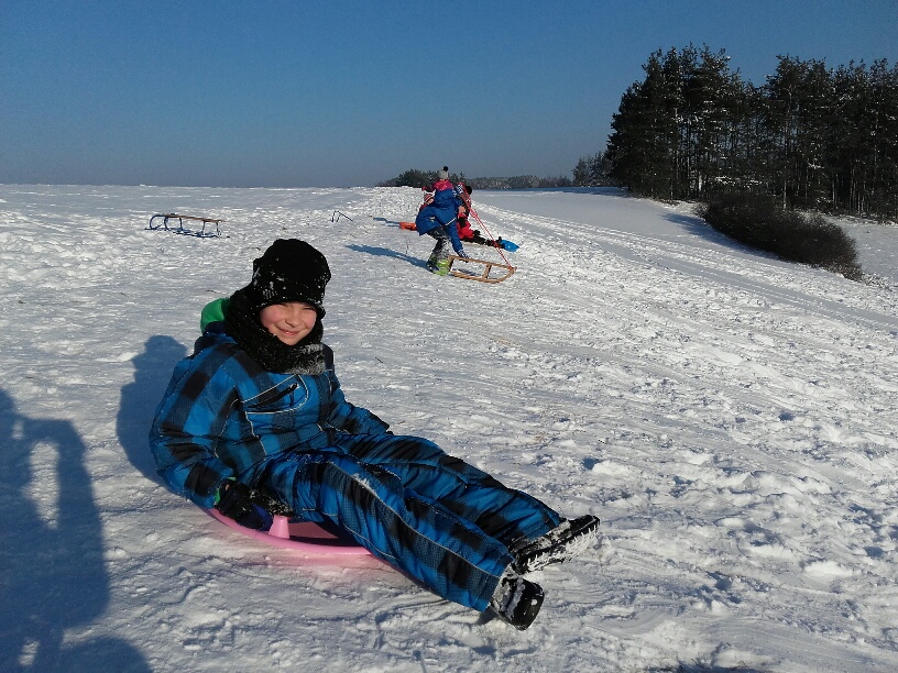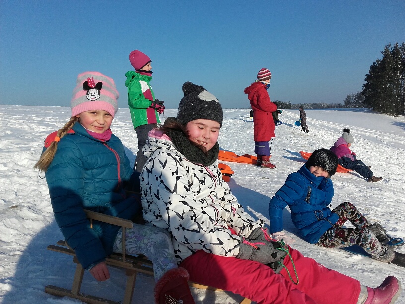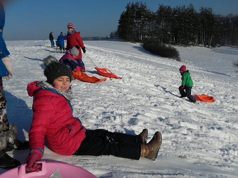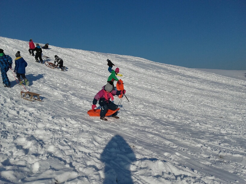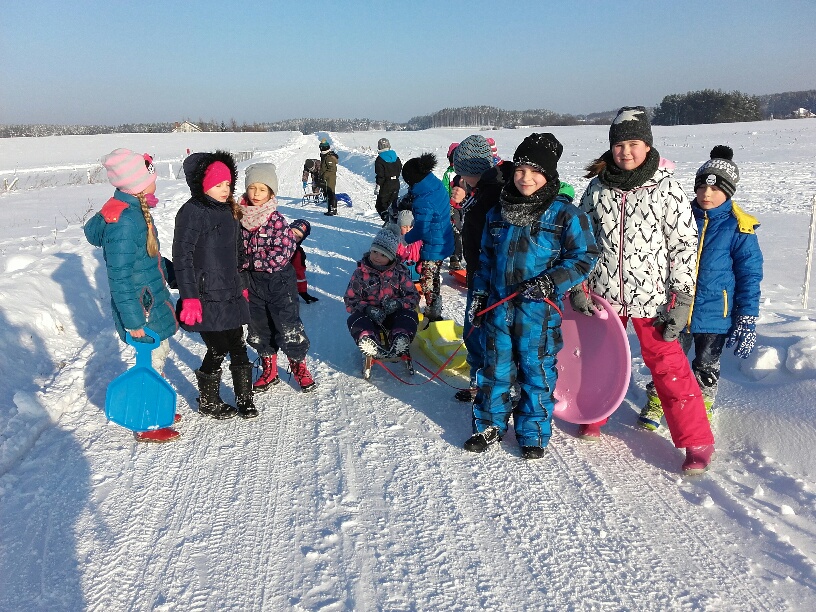 Tegoroczna zima płata nam figle, raz jest ciepło, a raz mroźno. Dlatego korzystając z jej uroku postanowiliśmy pobawić się na śniegu. Dzieci oddały się zimowemu szaleństwu, zjeżdżając na sankach. Pogoda była mroźna, ale nikomu to nie przeszkadzało, bo dzieci wiedzą, że zabawy na świeżym powietrzu to świetna rozrywka. Z czerwonymi noskami i z uśmiechem wróciliśmy do szkoły. Było mroźnie, ale wesoło i radośnie.