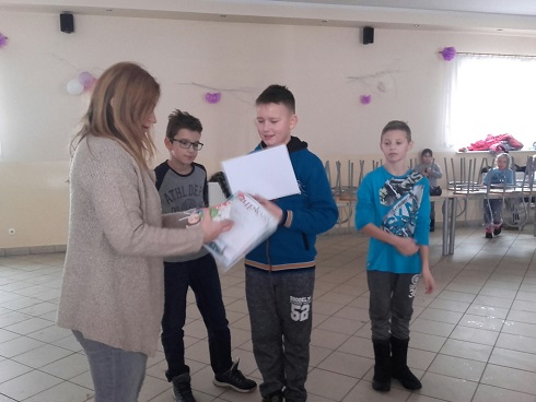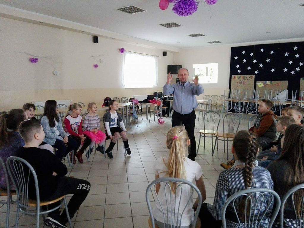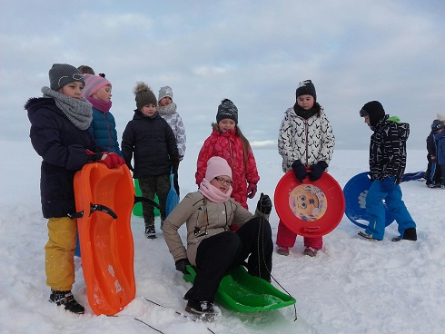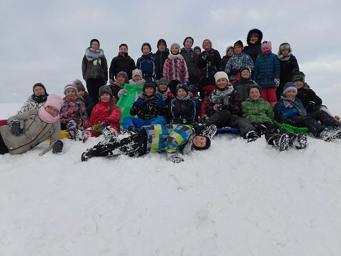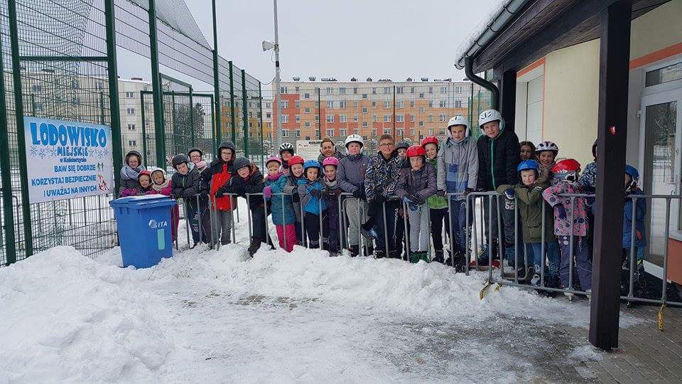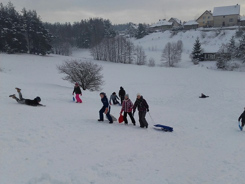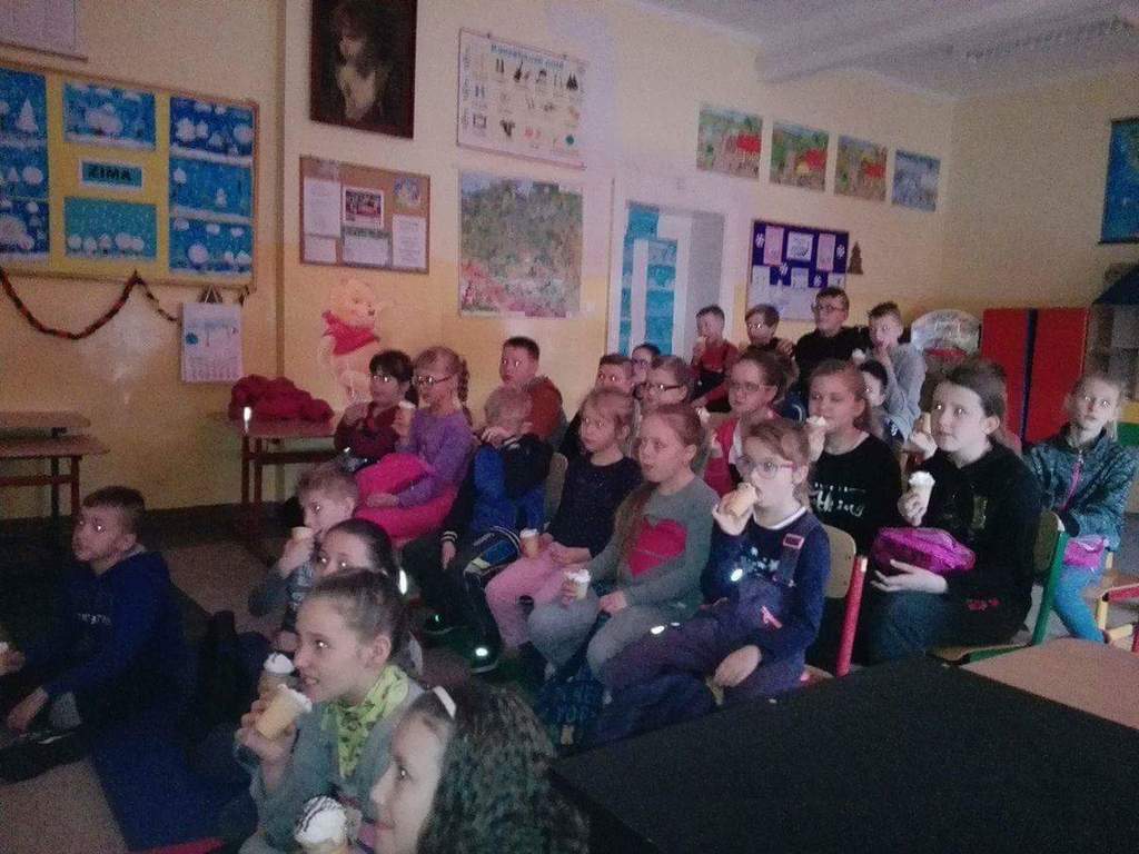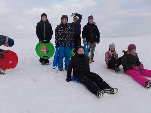 Ferie zimowe organizowane w naszej szkole były przepełnione interesującymi uczniów zajęciami organizowanymi przez dyrekcje i nauczycieli. Liczna grupa dzieci, pod opieką nauczycieli i dyrekcji realizowała codziennie inne ciekawe zajęcia, które sprawiały im mnóstwo radości i dały wytchnienie po ciężkiej pracy jaką wkładały w naukę przez pierwszy semestr roku szkolnego. W pierwszym dniu odbył się turniej tenisa stołowego dla klas IV-VI, młodsze dzieci w tym czasie grały w przeróżne gry planszowe. Następnie całą grupą pojechaliśmy na film pt: „Za niebieskimi drzwiami” do kina Remus w Kościerzynie. Drugiego dnia wybraliśmy się na pobliskie górki by korzystać z uroków zimy, która w tym roku dopisała i dzieci mogły wykorzystać okazję do zabaw na śniegu. W stołówce czekała na nich gorąca herbata i po ogrzaniu się przystąpiliśmy do wspólnego wykonania słodkich gofrów, które wszystkim bardzo smakowały. W kolejnym dniu czekał na dzieci seans filmowy oraz bardzo oczekiwany wyjazd na lodowisko w Kościerzynie. Dla niektórych uczniów było to pierwsze doświadczenie z jazdą na łyżwach, inni mogli już pochwalić się swoimi umiejętnościami. Po uśmiechach można sądzić, że były to dla dzieci niezapomniane chwile. Czwartego dnia w części plastycznej wykonywaliśmy plakaty o tematyce bezpiecznych ferii, wszyscy z zapałem podeszli do tematu w efekcie czego powstały świetne prace. Potem każdy mógł wykazać się swoimi umiejętnościami podczas szkolnego karaoke. Dzieci śpiewały indywidualnie i grupowo. W ostatnim dniu ferii w szkole odbyły się różne zabawy muzyczne, w których wszyscy chętnie uczestniczyli. Ostatnie chwile uczniowie spędzili na wspólnej dyskotece, podczas której wszyscy świetnie się bawili. Ferie zdecydowanie możemy uznać za bardzo udane.