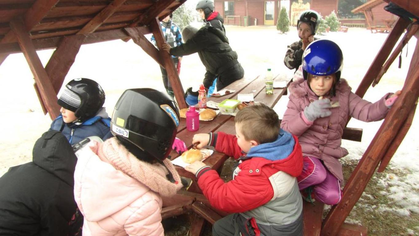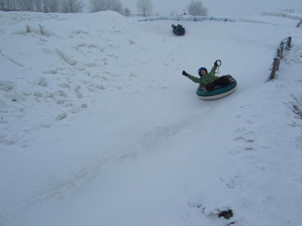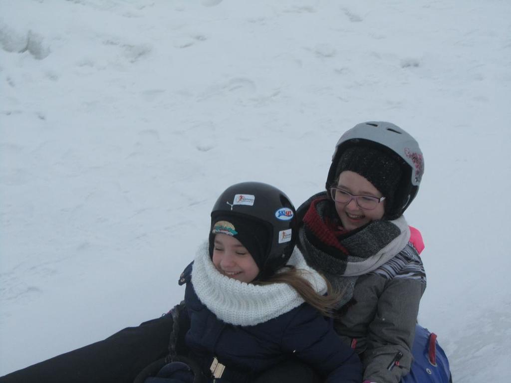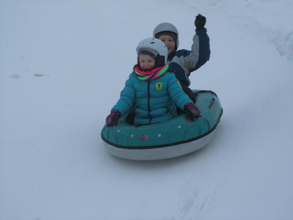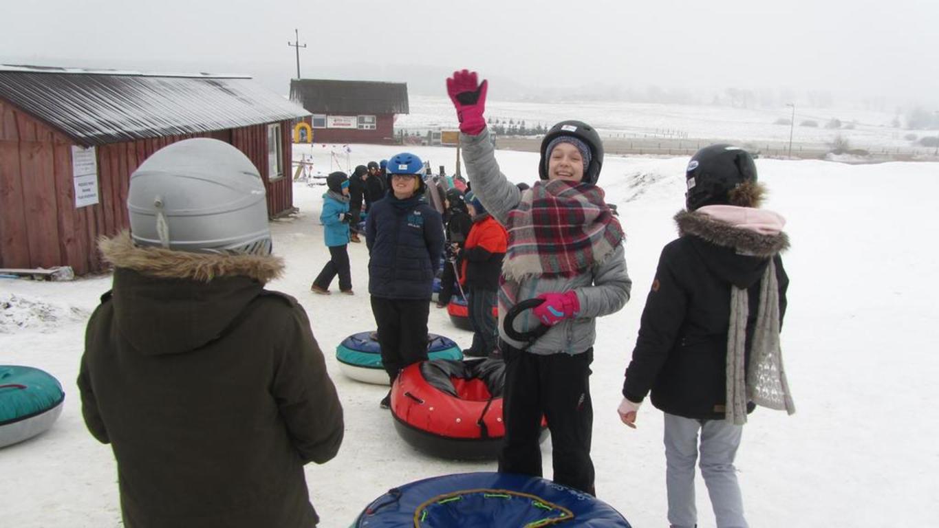 W czwartkowy poranek nasi uczniowie rozpoczęli przygodę ze snowtubingiem. Zaopatrzeni w kaski narciarskie, które otrzymali po przyjeździe do Ośrodka Narciarskiego Trzepowo, udali się stok. Każdy z nich miał po 10 zjazdów. Zjeżdżali osobno i parami, w specjalnie przystosowanych oponach. Okrzyki radości i uśmiech królowały na torze.