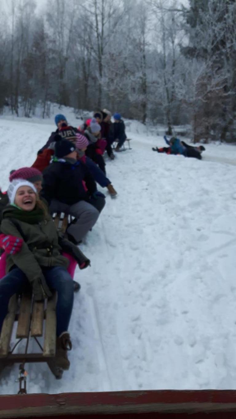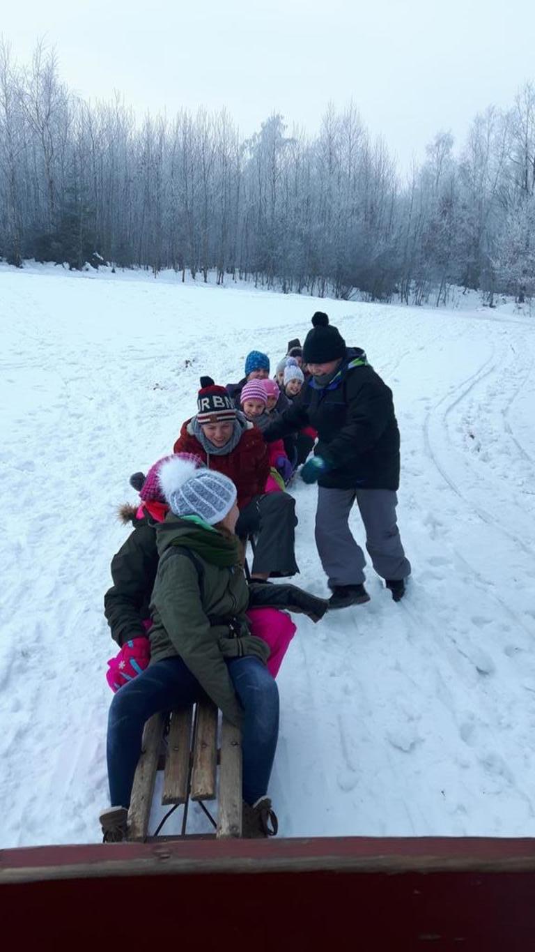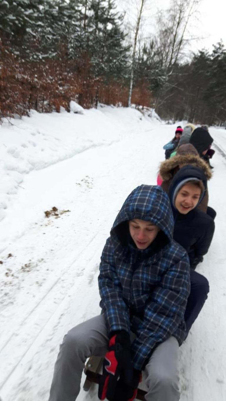 Sezon zimowy już się skończył, a my z sentymentem wspominamy zimowe zabawy na śniegu. Uczniowie od trzecich klas szkoły podstawowej po gimnazjum uczęszczający na język kaszubski wzięli udział w czterech kuligach z ogniskiem zorganizowanych w Szymbarku. Najwięcej radości sprawiło spotkanie z końmi no i przede wszystkim jazda na ostatnich sankach. Na koniec trzeba było zdać relację z wyjazdu. Oczywiście... po kaszubsku! Wszystko przebiegło sprawnie dzięki pomocy rodziców naszych uczniów, którzy w formie opiekunów towarzyszyli każdej grupie. Bardzo serdecznie im dziękujemy!