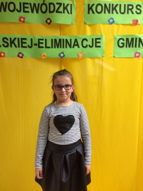 Z radością i dumą informujemy, że uczennica klasy II B, Liliana Jarzębińska zdobyła I miejsce w kategorii klas I – III i w dniu 30 marca br. będzie reprezentowała Gminę Kościerzyna podczas eliminacji powiatowych.