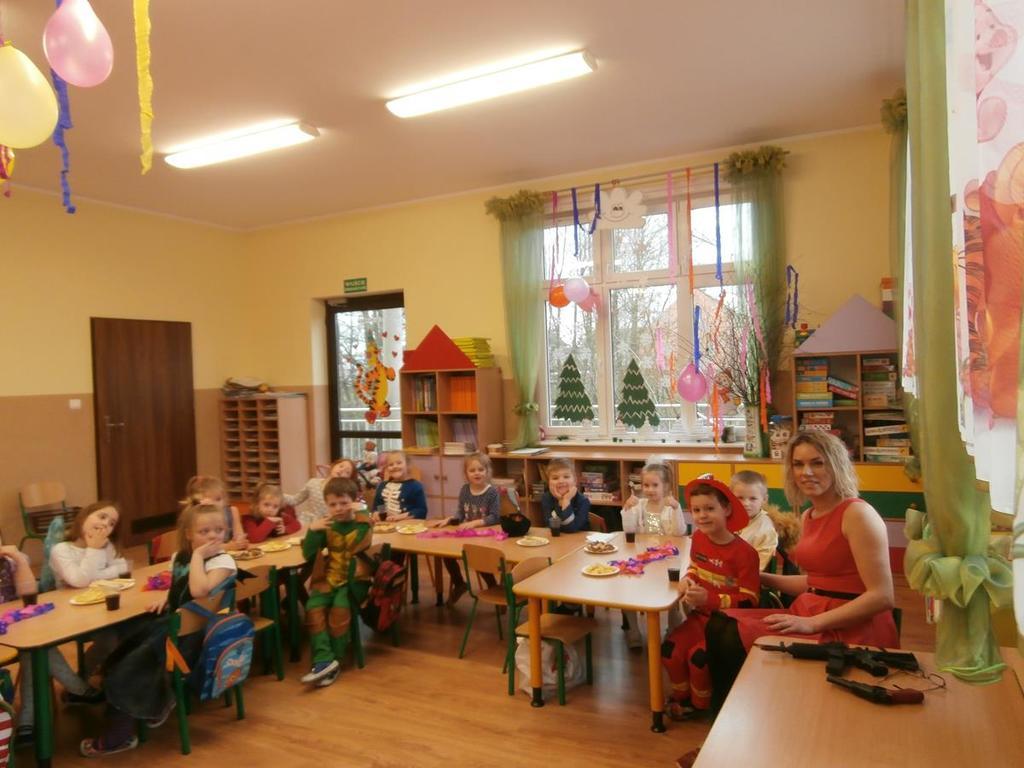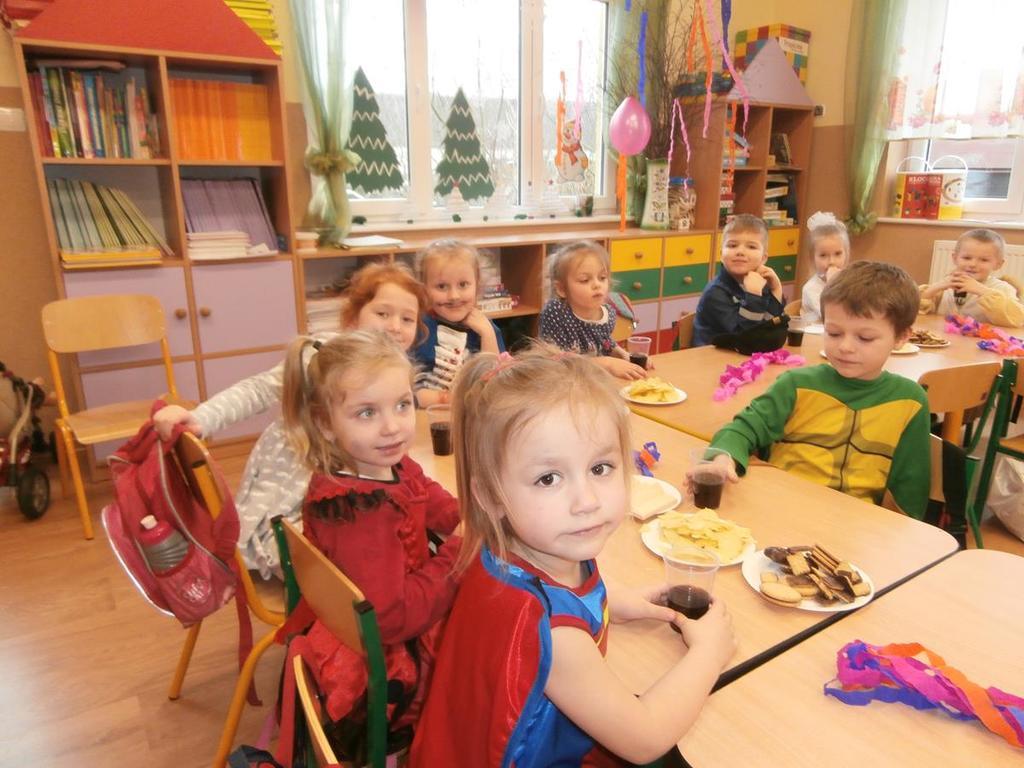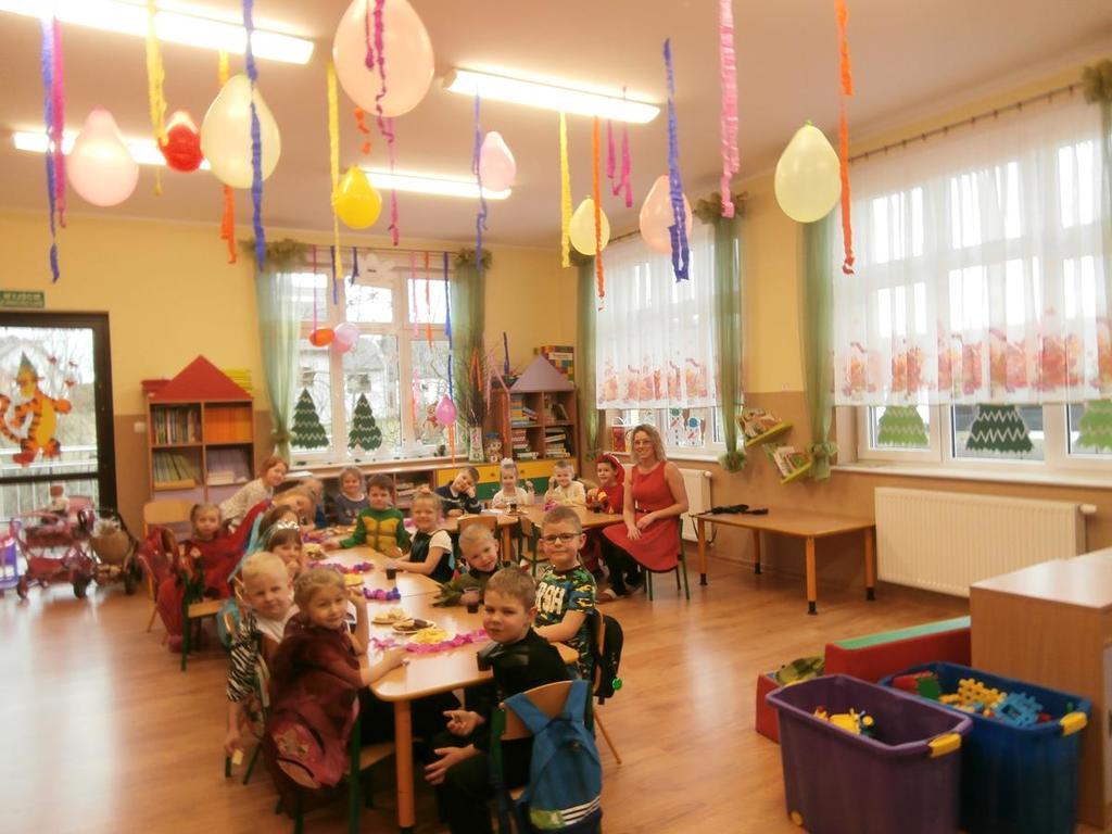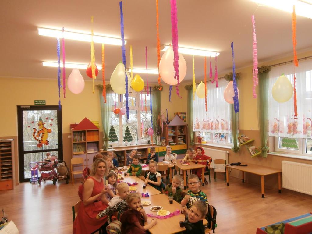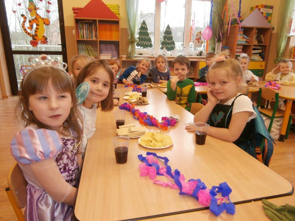 Kolorowe stroje, bajeczny wystrój i słodkości - w takiej aurze bawiły się dzieci z przedszkola podczas balu karnawałowego. W zabawie uczestniczyli także bałwanek Olaf, smok i wesoła krówka którzy nie pozwolili by przedszkolaki się nudziły…
