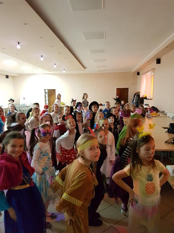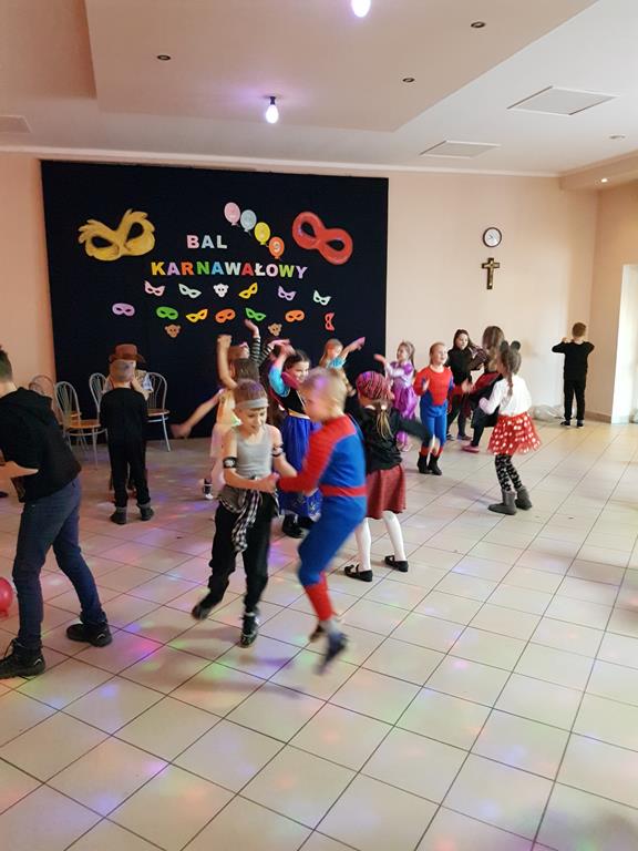 W czwartek, 24 stycznia 2019 r. w naszej szkole odbył się Bal Karnawałowy dla uczniów klas I - III. Już od wejścia można było wyczuć niecodzienny nastrój. Dzieci przebrane w barwne i pomysłowe stroje, bawiły się świetnie, a skoczna i rytmiczna muzyka zachęcała do zabawy. Po wielkiej prezentacji strojów i nagrodzeniu najciekawszych, rozpoczęły się tańce, które były przeplatane wieloma konkursami. Zwycięzców nagradzano cukierkami, lizakami oraz balonikami. Wszyscy bawili się wesoło, a uśmiech nie znikał z twarzy. Bal umożliwił dzieciom i wychowawcom spędzenie czasu w miłej atmosferze.