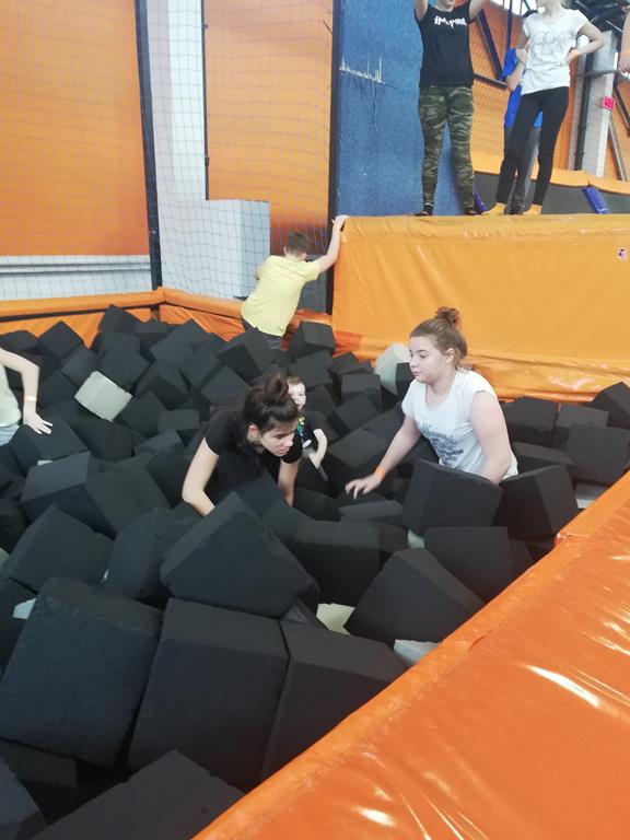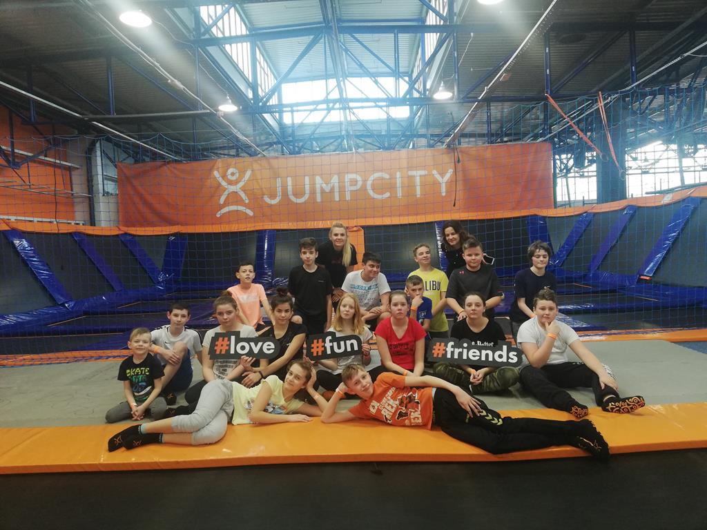 Lekcja wychowania fizycznego w Jump City. 29 stycznia uczniowie klasy 7b pod okiem instruktora i nauczyciela odbyli lekcje w-fu w Jump City w Gdyni. Wspólne szaleństwa zintegrowalo klasę jeszcze bardziej. Po wyczerpującym wysiłku uzupełnił kalorie w McDonald's