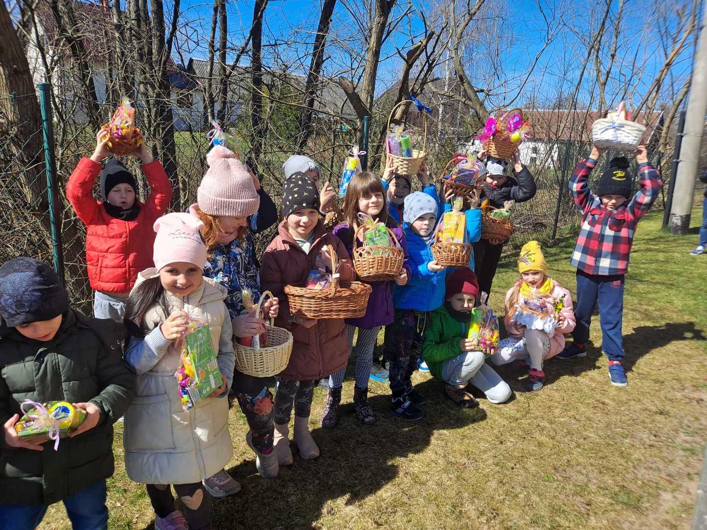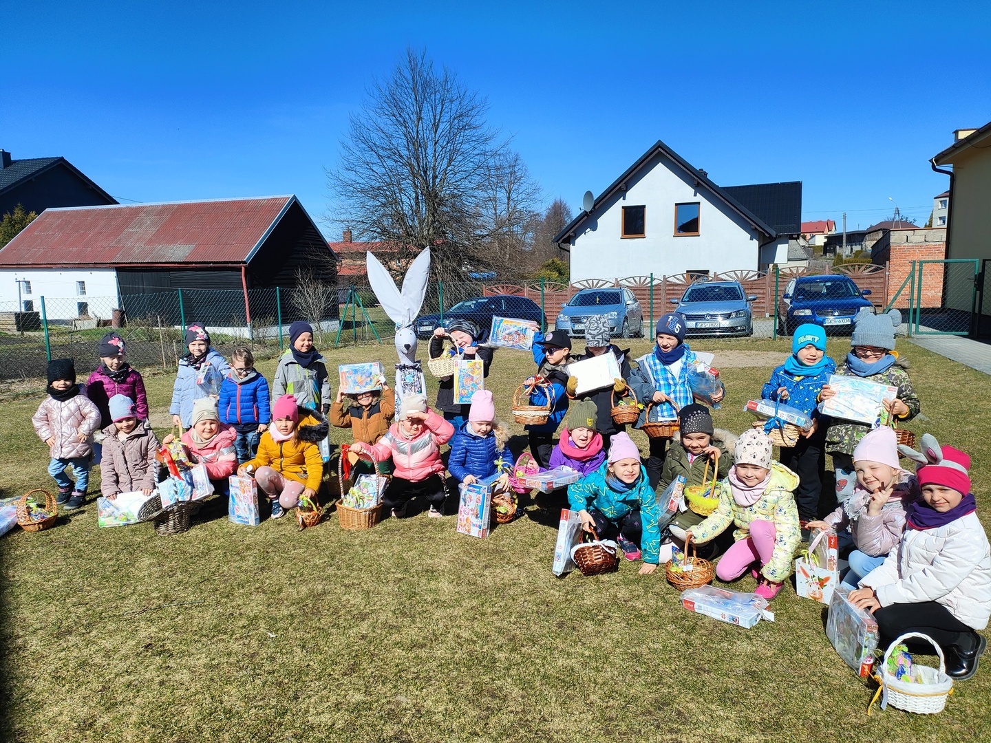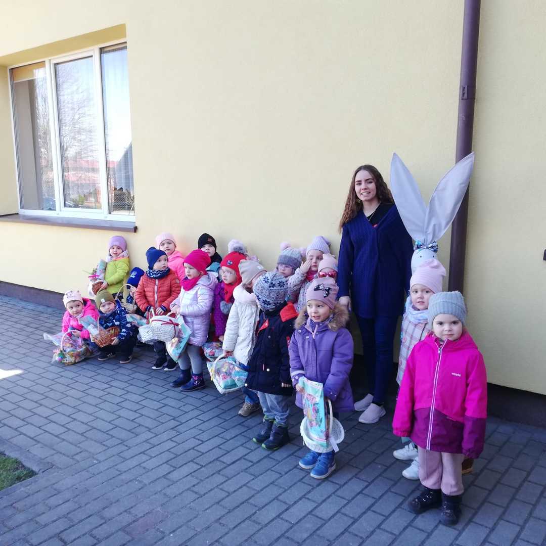 Każdego roku, w okresie Wielkanocnym do wszystkich grup przedszkolnych przychodzi Zajączek Wielkanocny i w tajemniczy sposób zostawia dla wszystkich przedszkolaków koszyczki z prezentami. Tym razem też nas nie zawiódł. Koszyczki z niespodziankami ukryte były na terenie przedszkola. Dzieci z wielką radością i wypiekami na twarzy szukały upominków zostawionych przez Zajączka.