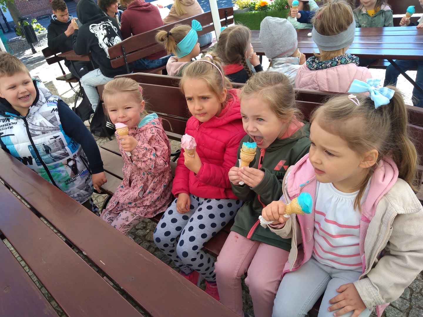 Dnia 18 maja 2022 roku. przedszkolaki wybrały się na wycieczkę do kościerskiego kina „Remus” na spektakl teatralny pt. "Jaś i Małgosia". Celem wycieczki było między innymi rozbudzanie zainteresowania kulturą oraz wyzwalanie pozytywnych uczuć i emocji. Dzieci dowiedziały się jak bezpiecznie podróżować autokarem oraz poznały zasady prawidłowego zachowania się podczas przedstawienia. Kiedy dotarły na miejsce, z wielką niecierpliwością czekały na rozpoczęcie spektaklu. Dzieciom bardzo podobały się wykreowane postacie Jasia i Małgosi, Baby Jagi i jej Kota oraz Ojca i Macochy. Pomysłowa, scenografia, barwne kostiumy, efekty świetlne, wspaniała muzyka, a przede wszystkim świetna gra aktorów spowodowały, że przedszkolaki z zaciekawieniem oglądały widowisko. Mieliśmy również okazje pójść na kościerski rynek, gdzie zjedliśmy smaczne lody.