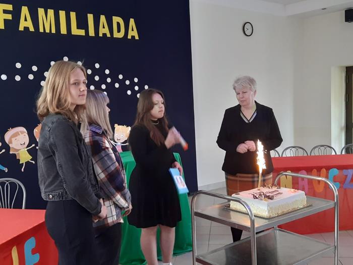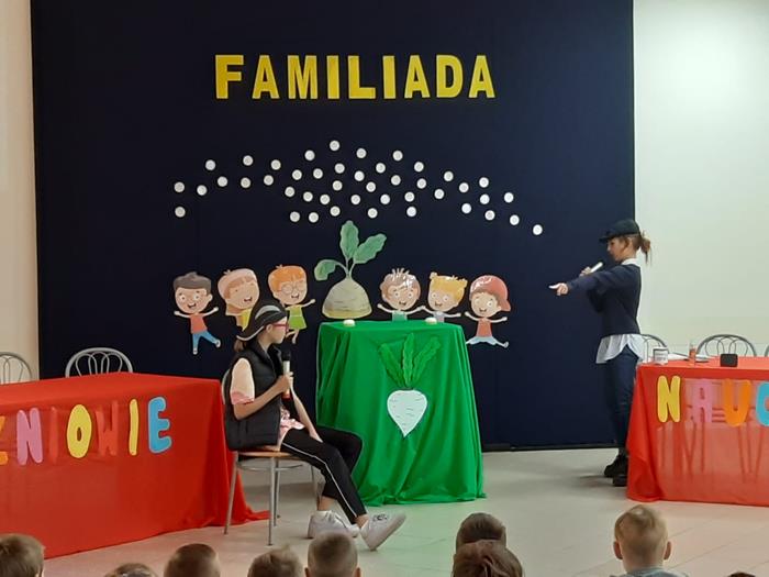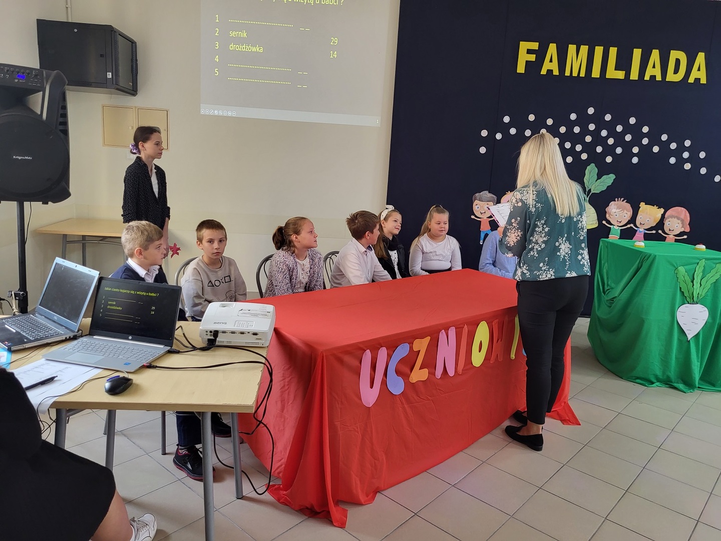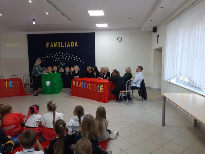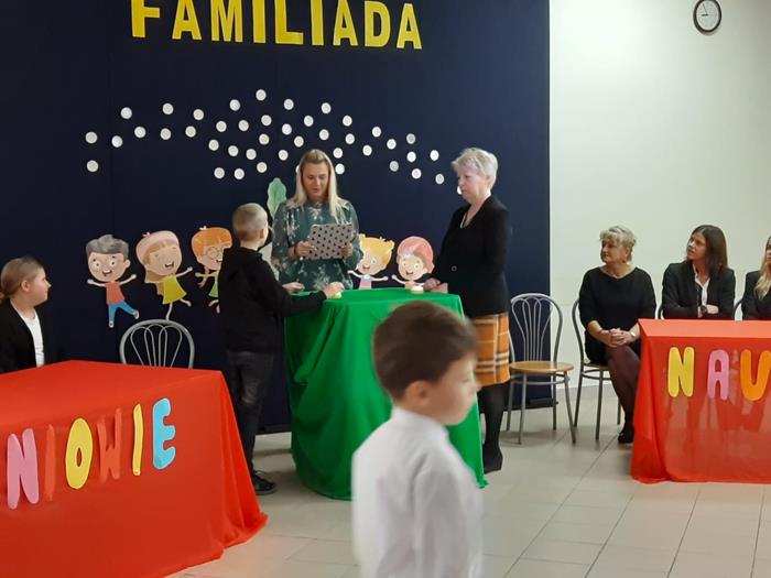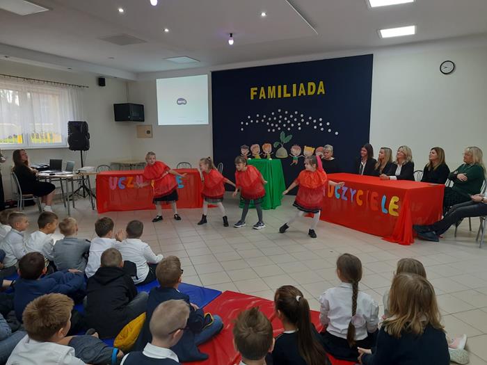 Z okazji Dnia Edukacji Narodowej potocznie nazywanym Dniem Nauczyciela, Samorząd Uczniowski wraz z p. Beatą Ceplin i p. Adrianą Koniuszek przygotowali turniej „Familiada”. Rozgrywka toczyła się między drużyną uczniów, a drużyną nauczycieli. W zaciętej rywalizacji zwycięstwo odnieśli nauczyciele, uczniowie otrzymali słodkie upominki. Uczennice klasy V przygotowały kabaret, który rozbawił nas do łez. Nie zabrakło również występu tanecznego zaprezentowanego przez uczennice klasy 2a.