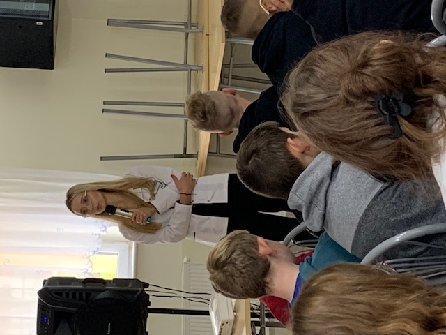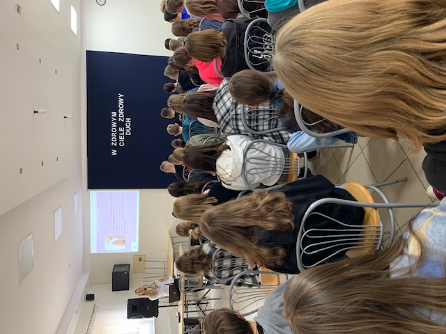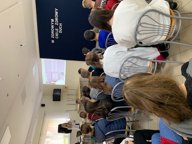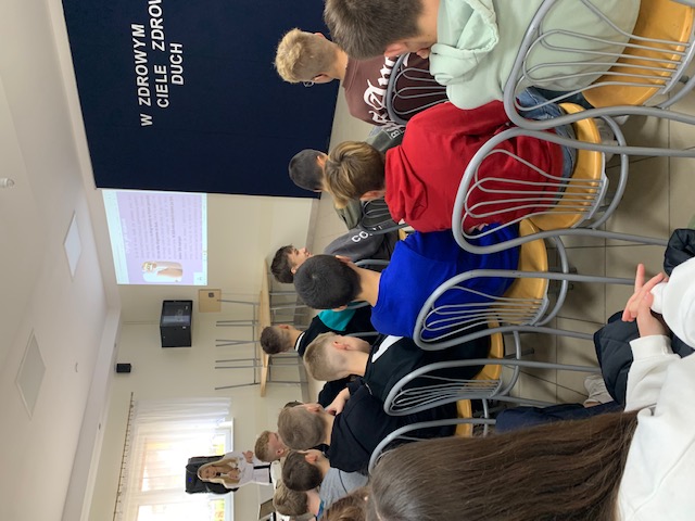 Dnia 21.10.2022r. uczniowie klasy VII, VIII a i VIII b mieli możliwość uczestniczenia w zajęciach z dietetykiem, ze względu na realizację programu prozdrowotnego „Wiem, co jem”, dzięki któremu z roku na rok zwiększa się świadomość zasad zdrowego stylu życia, w tym racjonalnego i zbilansowanego odżywiania się oraz dbania o kondycję fizyczną.