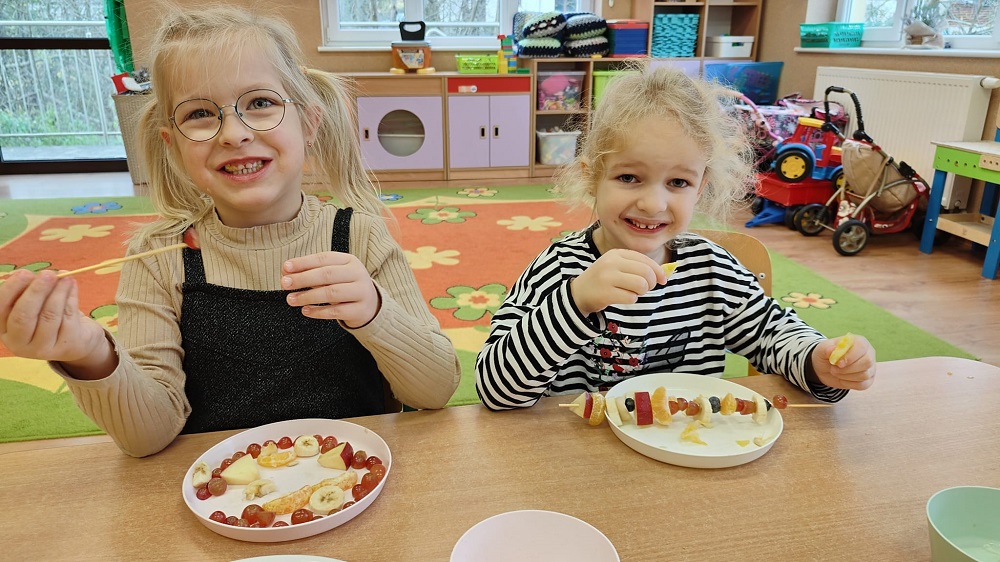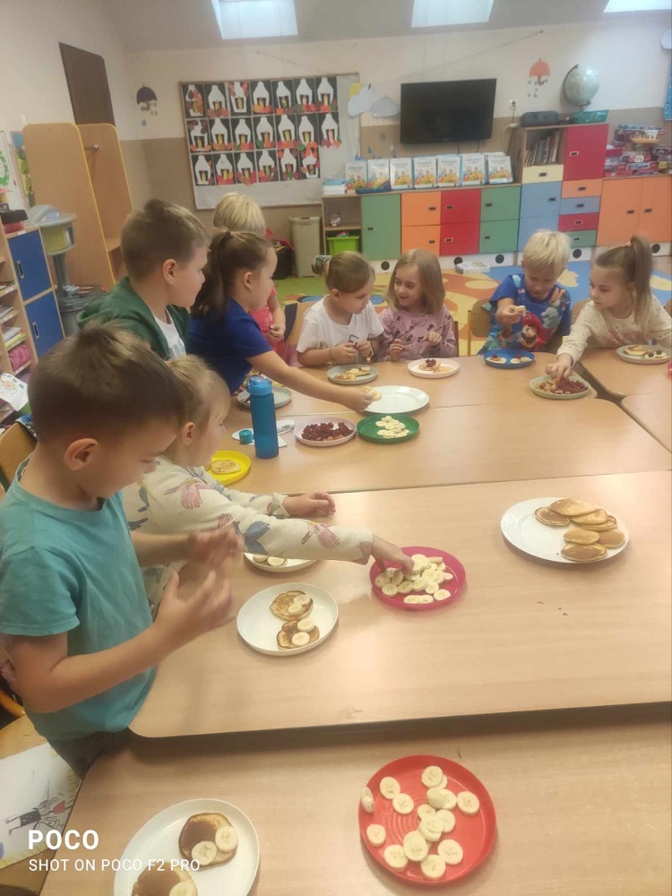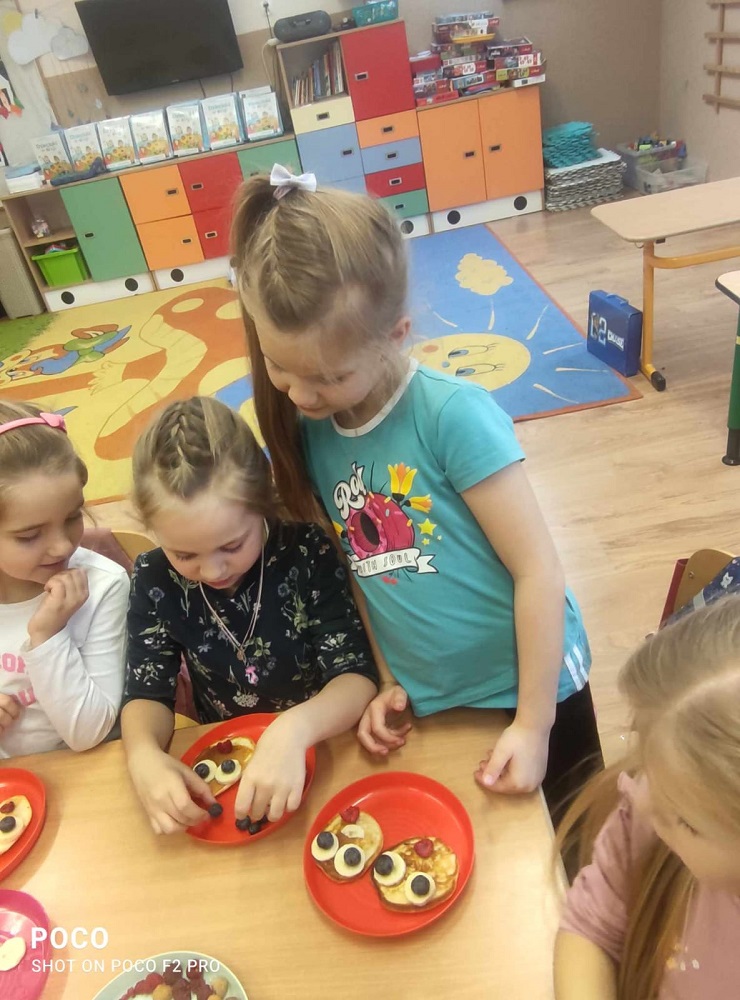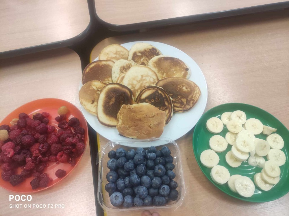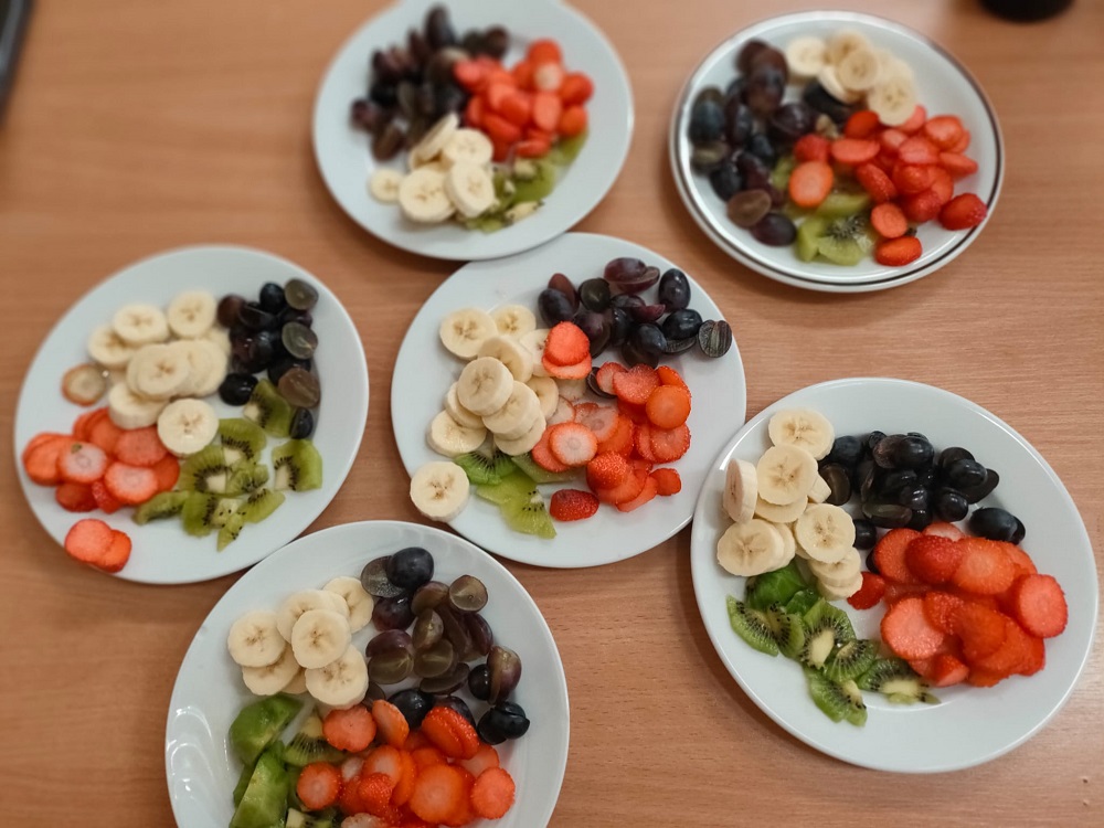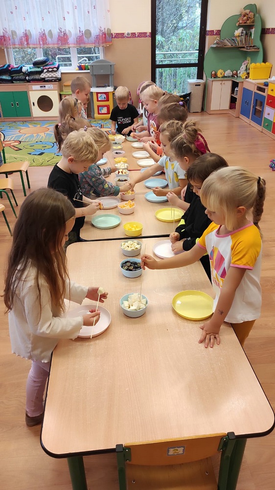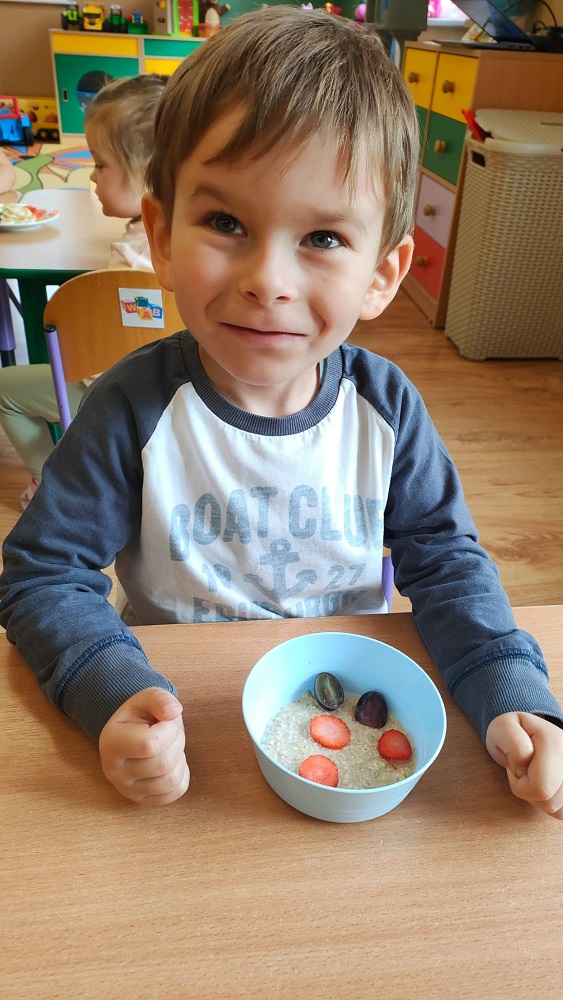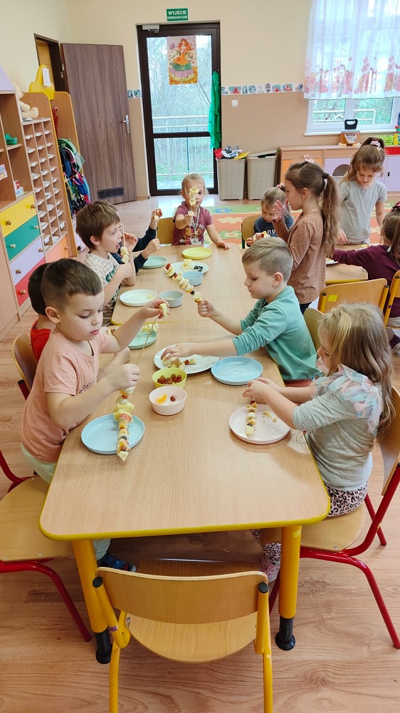 Każda z grup przygotowała zdrowe jedzenie tj. owsiankę, placuszki z owocami, owocowe szaszłyki